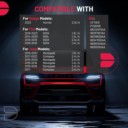 [Vehicle Fitment] Compatible with Fiat 500X 2019-2023 1.3L l4, 500X 2016-2018 1.4L/2.4L, 500L 2014-2020 1.4L l4; Compatible with Dodge Hornet 2023 2.0L l4; Compatible with Jeep Renegade 2019-2023 1.3L l4, Renegade 2015-2018 1.4L l4, Renegade 2015-2020 2.4L l4, Compass 2017-2022 2.4L l4