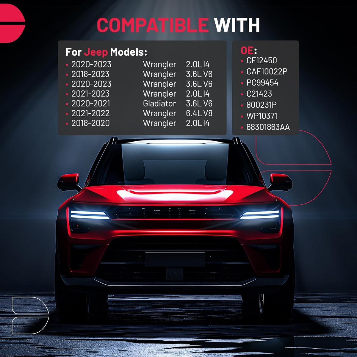 [Vehicle Fitment] Compatible with Jeep Wrangler 2018-2023 2.0L l4/3.6L V6, Wrangler 2021-2022 6.4L V8, Gladiator 2020-2021 3.6L V6