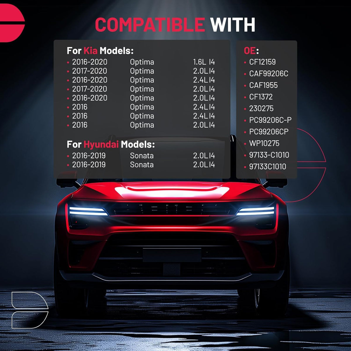 [Vehicle Fitment] Compatible with Kia Optima 2016-2020 1.6L/2.0L/2.4L l4; Compatible with Hyundai Sonata 2016-2019 2.0L l4