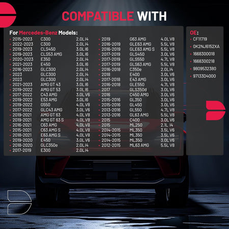 [Vehicle Fitment] Compatible with Mercedes-Benz C300, CLS450, CLS53 AMG, E350, E450, GLC300, AMG GT 43, AMG GT 53, C43 AMG, E53 AMG, G550, GLC43 AMG, AMG GT 63, AMG GT 63 S, C63 AMG, C63 AMG S, E63 AMG S, E450, GLC350e, E300, G63 AMG, GLE63 AMG, GLE63 AMG S, GLS450, GLS550, GLS63 AMG, C350e, E400, E43 AMG, GLE550, GLS350d, C450 AMG, GL350, GL450, GL550, GL63 AMG, C400, ML250, ML350, ML63 AMG