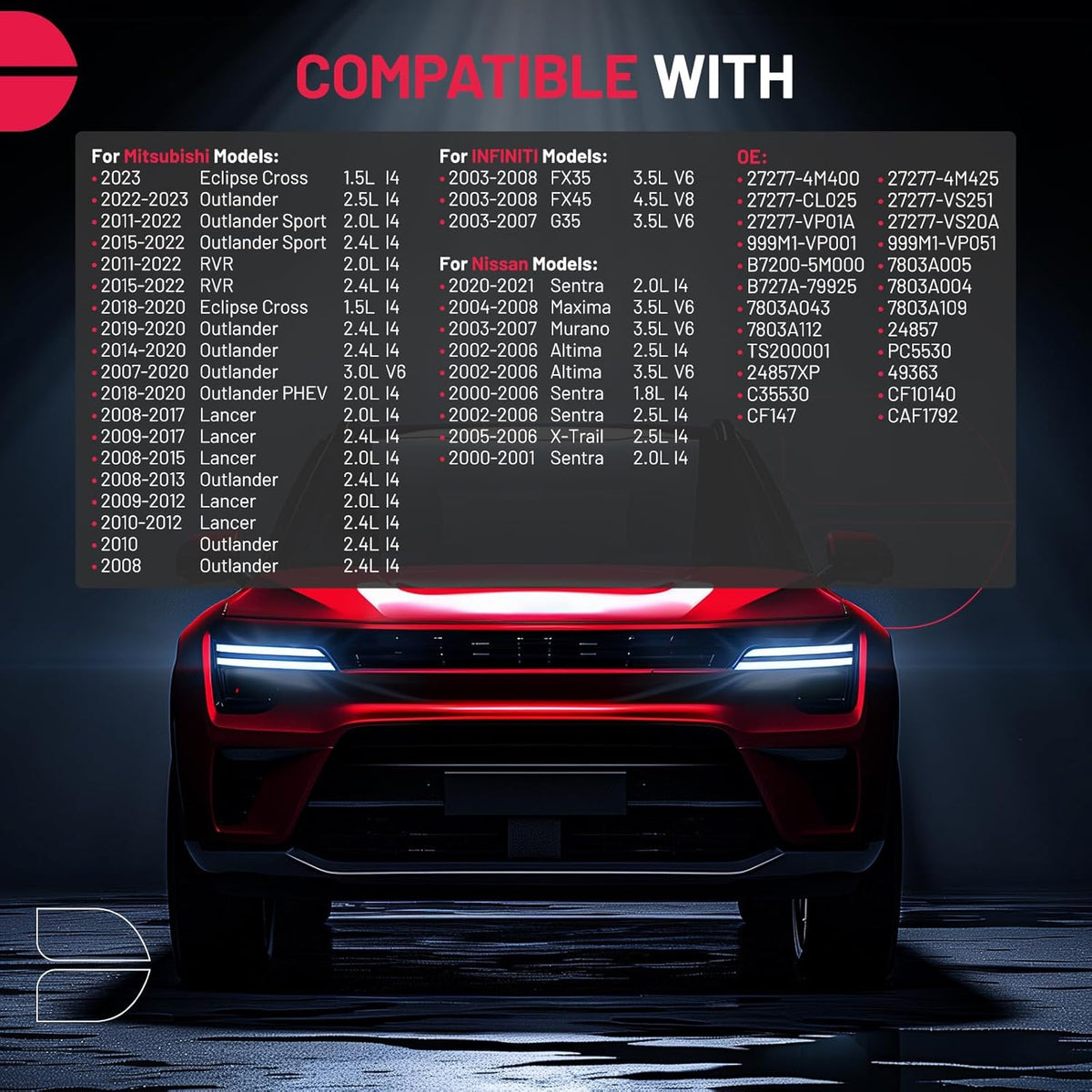 [Vehicle Fitment] Compatible with Mitsubishi Eclipse Cross 2018-2020 & 2023, Outlander 2007-2020 & 2022-2023, Outlander Sport 2011-2022, Outlander PHEV 2018-2020, RVR 2011-2022, Lancer 2008-2017; Compatible with Nissan Maxima 2003-2008, Altima 2002-2006, Sentra 2000-2006 & 2020-2021, X-Trail 2005-2006; Compatible with INFINITI FX35/FX45 2003-2008, G35 2003-2007