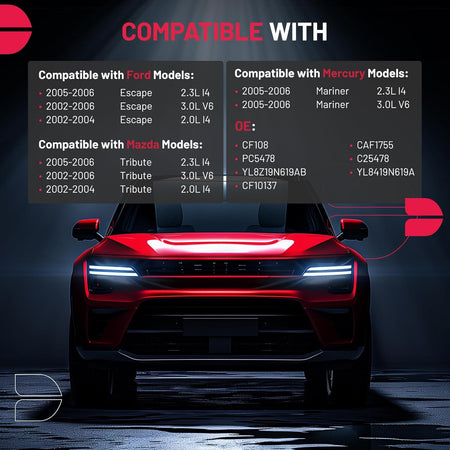 [Vehicle Fitment] Compatible with Ford Models: 2002-2004 Escape 2.0L l4, 2005-2006 Escape 2.3L l4, 2002-2006 Escape 3.0L V6; Compatible with Mazda Models: 2005-2006 Tribute 2.3L l4, 2002-2006 Tribute 3.0L V6, 2002-2004 Tribute 2.0L l4; Compatible with Mercury Models: 2005-2006 Mariner 2.3L l4/ 3.0L V6