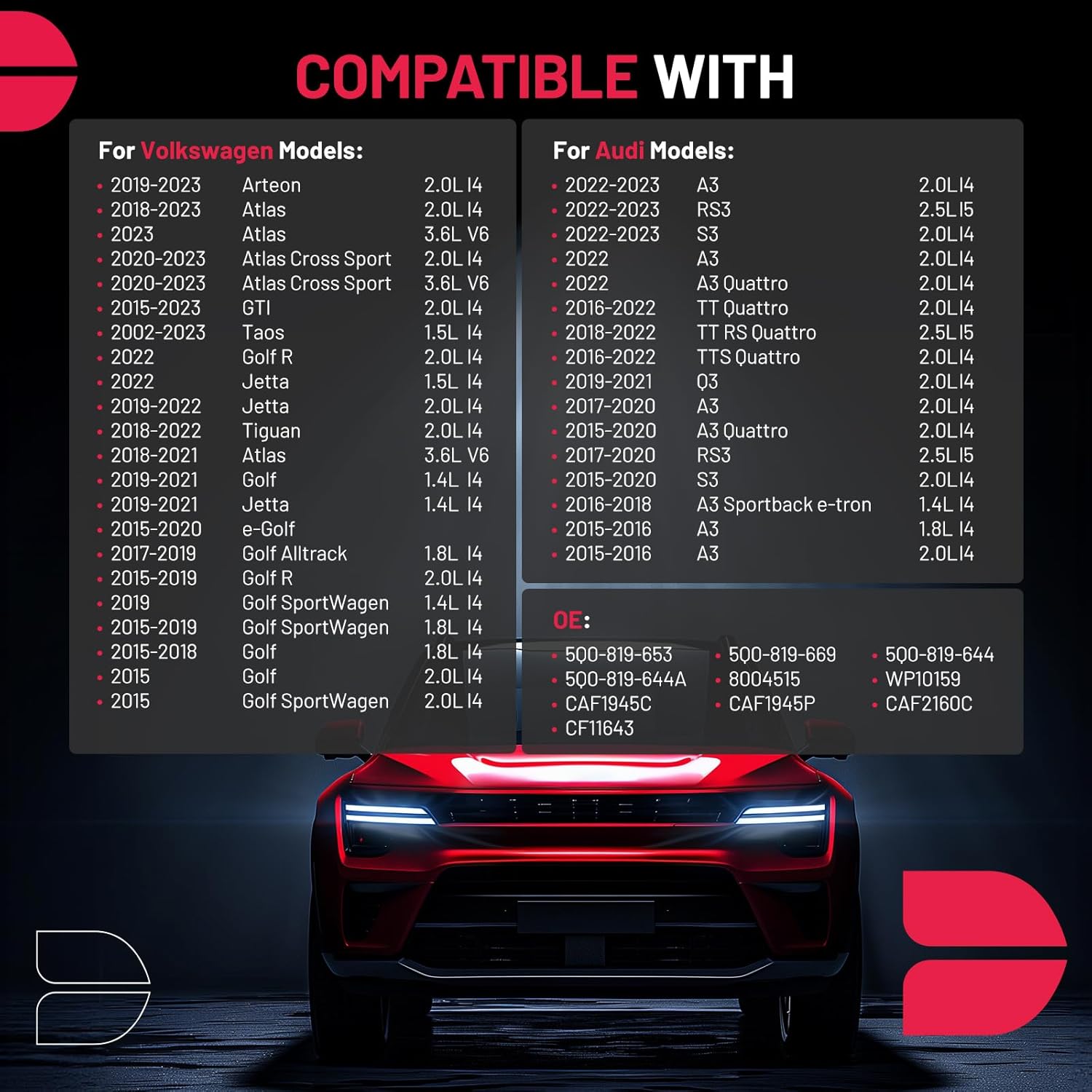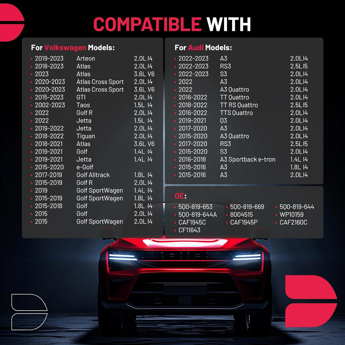 【Replaces Part】 5Q0-819-653, 5Q0-819-669, 5Q0-819-644, 5Q0-819-644A, 8004515, WP10159, CAF1945C, CAF1945P, CAF2160C, CF11643. Compatible with Audi Models: 2015-2020 A3/ S3/ A3 Quattro, 2016-2018 A3 Sportback e-tron, 2019-2021 Q3, 2017-2020 & 2022-2023 RS3, 2022-2023 A3/S3, 2022 A3 Quattro, 2016-2022 TT Quattro/TTS Quattro, 2018-2022 TT RS Quattro