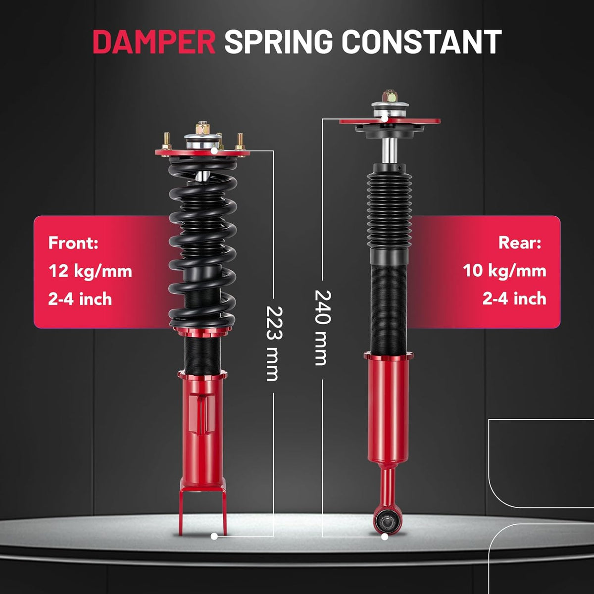 BDFHYK Coilovers Compatible with 2006-2010 Chrysler 300/ Dodge Challenger Charger Shock Absorber Replacement 4 PCS, Adjustable Height Coilovers Suspension Kit Lowering Kit, Red