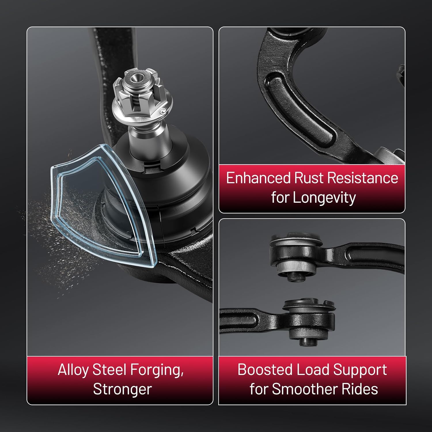 【Products contain】1x Front Left Upper Control Arm w/Pre-Assembled Ball Joint Assembly - K80306,1x Front Right Upper Control Arm w/Pre-Assembled Ball Joint Assembly - K80308