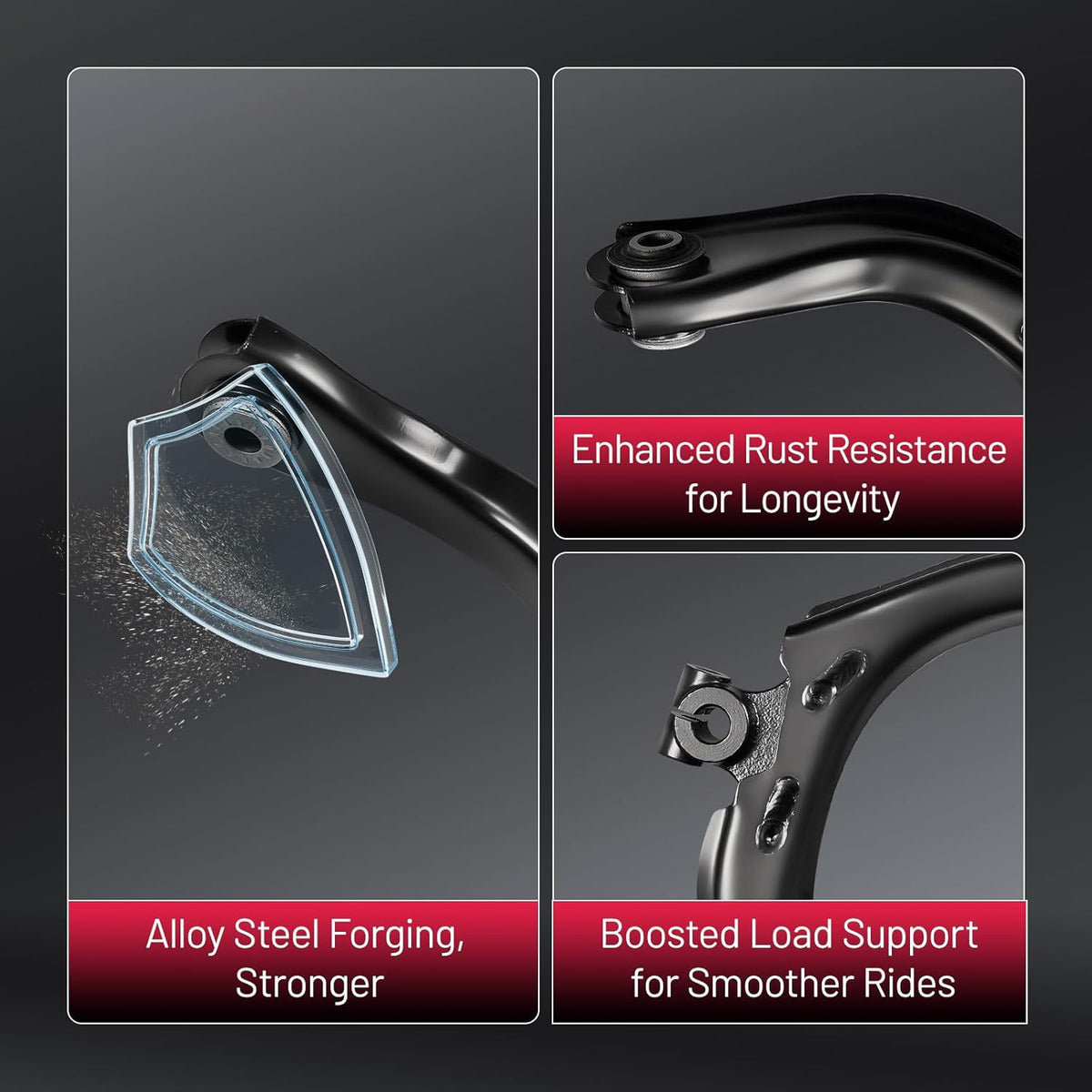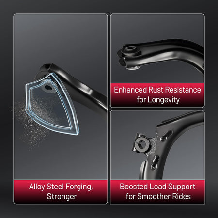 【Control Arm Features】The control arm improves stability, handling, and driving comfort, with a protective finish that helps extend service life. Made from forged alloy steel, it delivers reliable performance, reduces noise, and ensures accurate fitment for safe and consistent driving