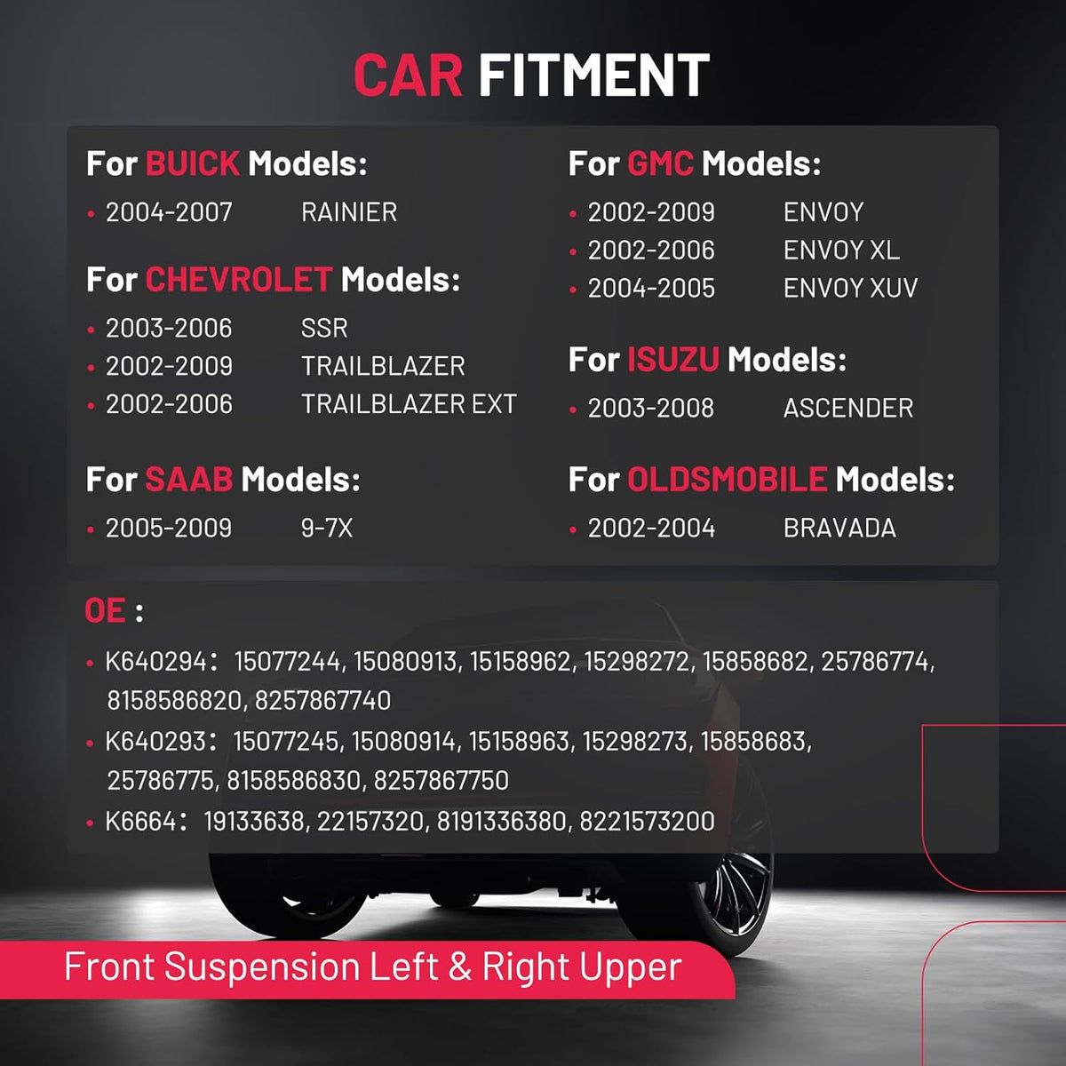 【Compatible with】 Compatible with Buick Rainier 2004-2007, Compatible with Chevrolet SSR 2003-2006, Compatible with Chevrolet TrailBlazer 2002-2009, Compatible with Chevrolet TrailBlazer EXT 2002-2006, Compatible with GMC Envoy 2002-2009, Compatible with GMC Envoy XL 2002-2006, Compatible with GMC Envoy XUV 2004-2005, Compatible with Isuzu Ascender 2003-2008, Compatible with Oldsmobile Bravada 2002-2004, Compatible with Saab 9-7x 2005-2009