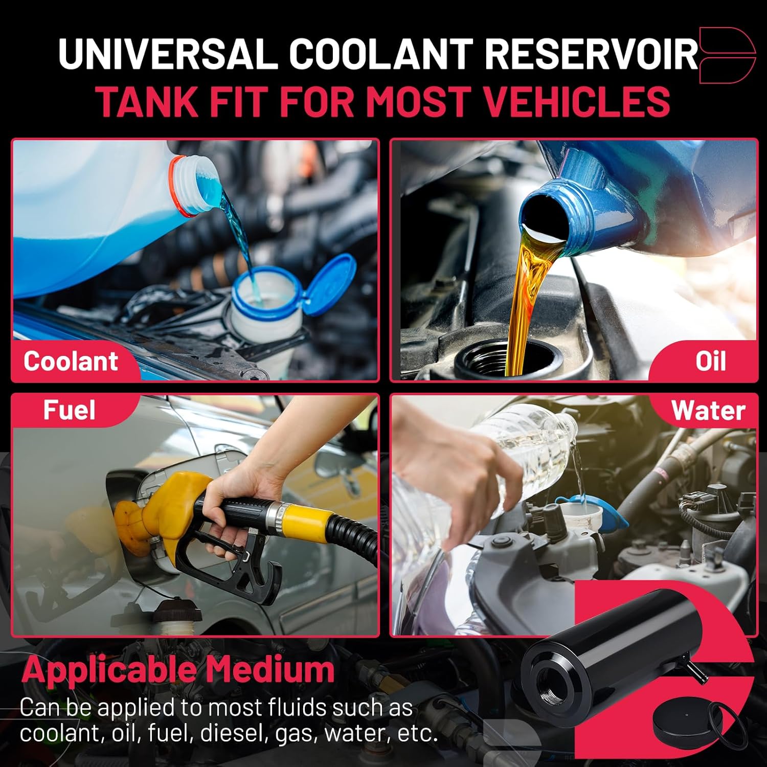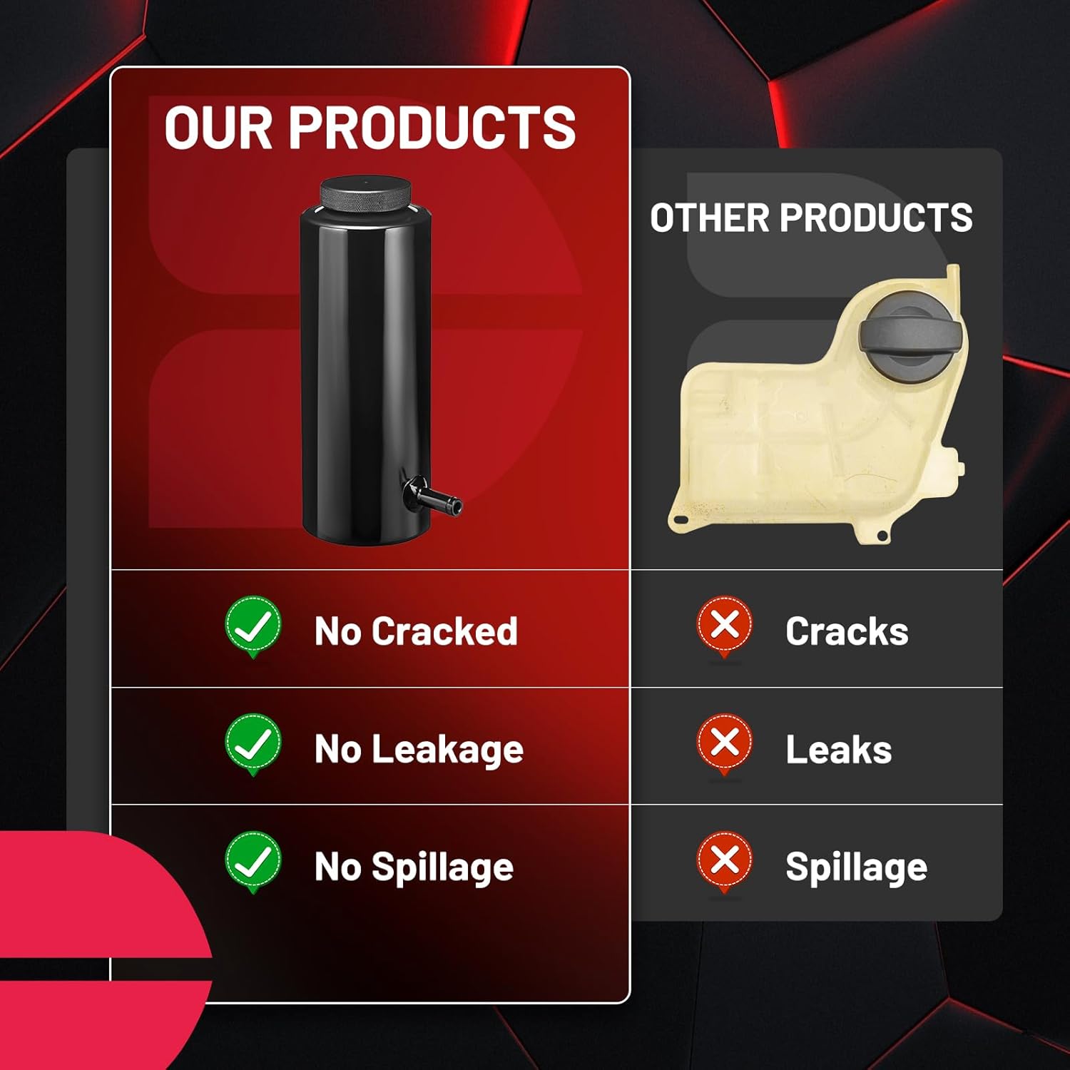 【Prevent oil leakage】Coolant overflow tank tight-sealing cover, full Tig welding, thread with O-ring gasket, maintain a good closed environment to prevent oil leakage. Keep away from heat sources to install.