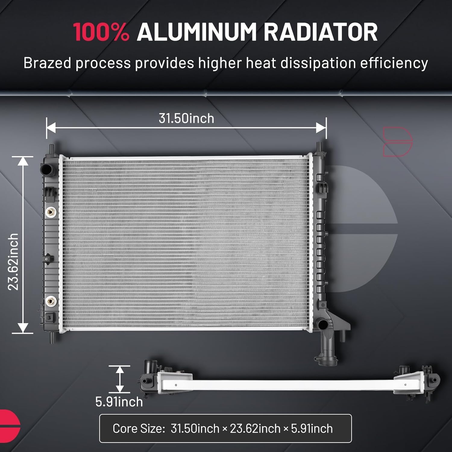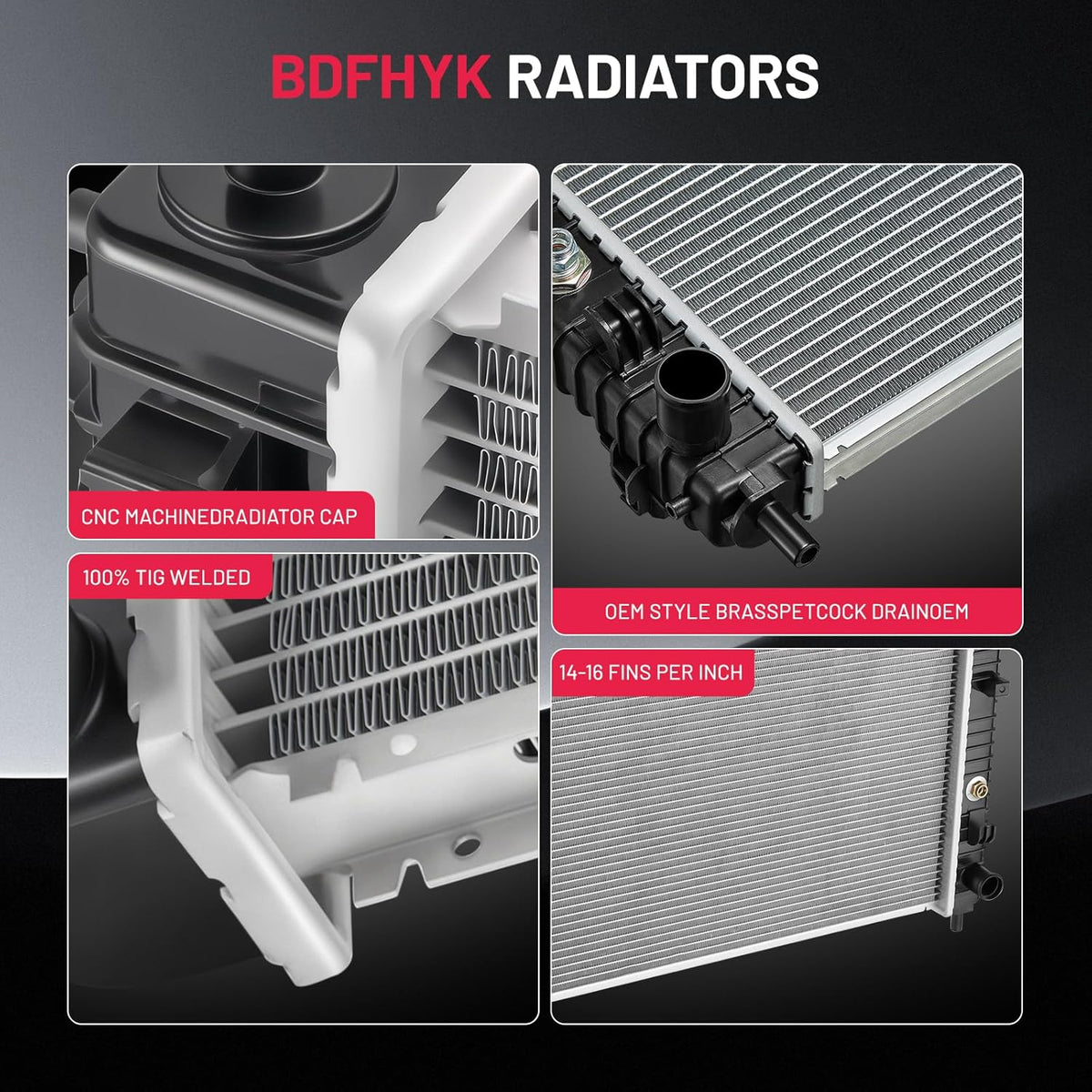 BDFHYK CU13007 Aluminum Radiator for Compatible with Buick Enclave Chevrolet Traverse GMC Acadia Saturn Outlook Full Aluminum Coolant Radiator 3.6L V6 Replace 13006