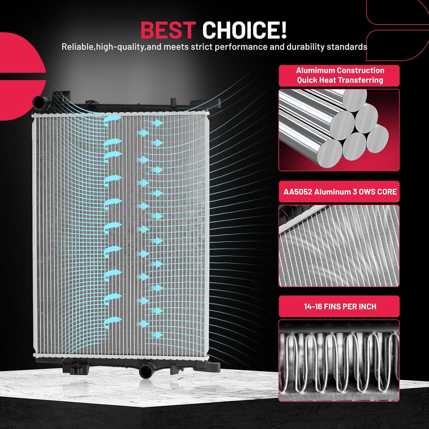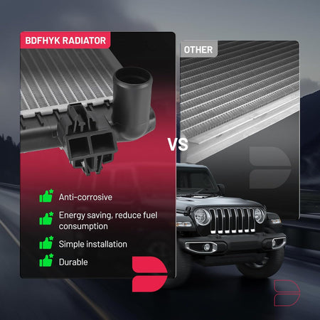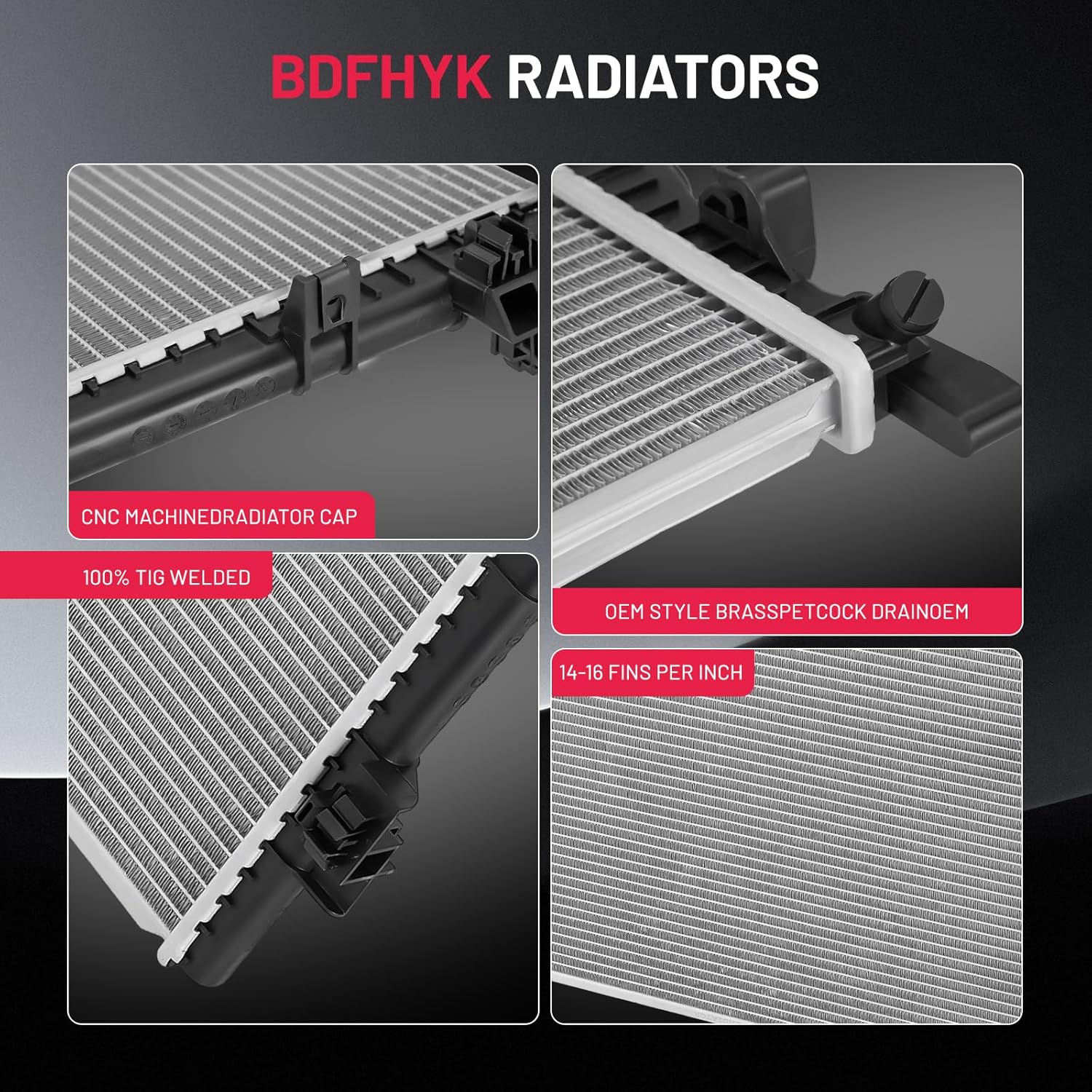 [Superior Cooling Performance] BDFHYK aluminum radiator maintains good engine temperature, even under tough conditions. Featuring an oil cooler, it prevents overheating, improves lubrication, and extends engine life, enhancing vehicle performance