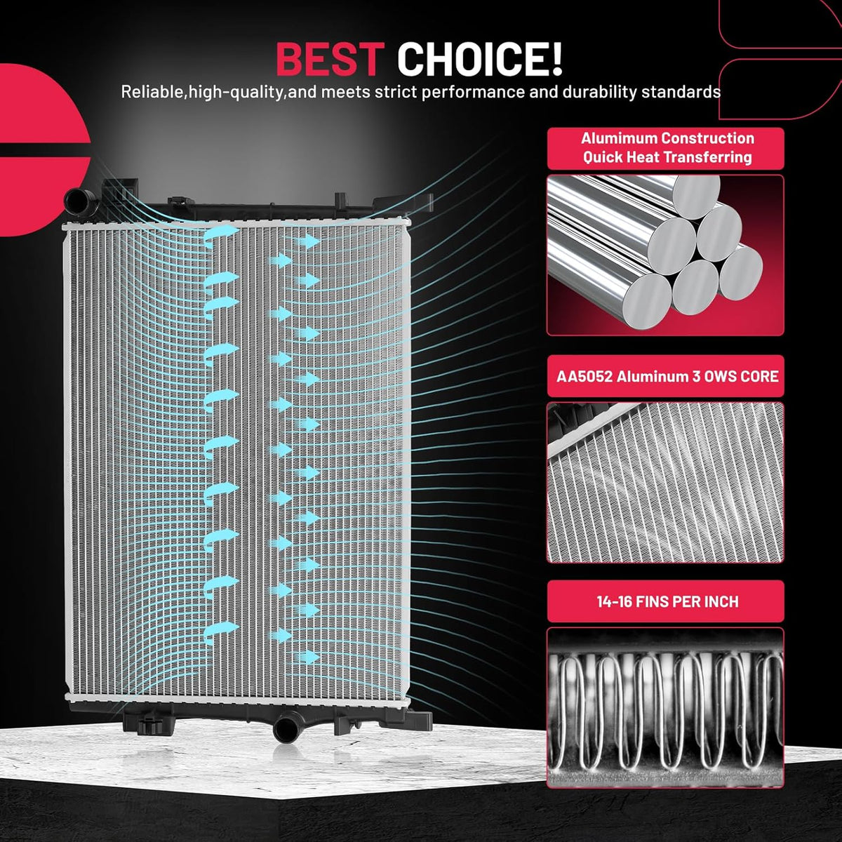 [Strong & Efficient Design] Made from high-quality aluminum, it offers corrosion resistance,and heat conductivity. The page-style fin design facilitates heat dissipation and maintains consistent coolant flow