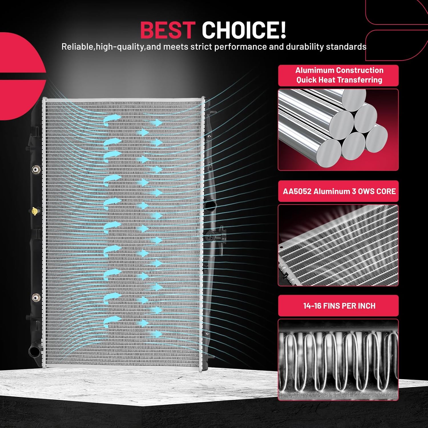 【Strong & Efficient Design】 Made from high-quality aluminum, it offers corrosion resistance,and heat conductivity. The page-style fin design facilitates heat dissipation and maintains consistent coolant flow