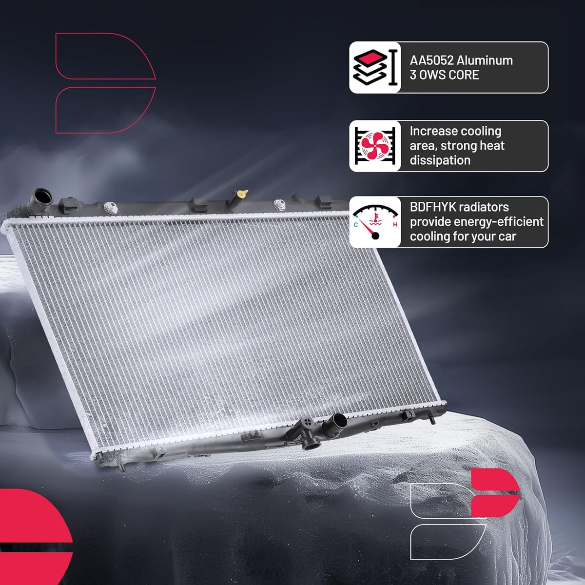 【Superior Cooling Performance】 BDFHYK aluminum radiator maintains good engine temperature, even under tough conditions. Featuring an oil cooler, it prevents overheating, improves lubrication, and extends engine life, enhancing vehicle performance