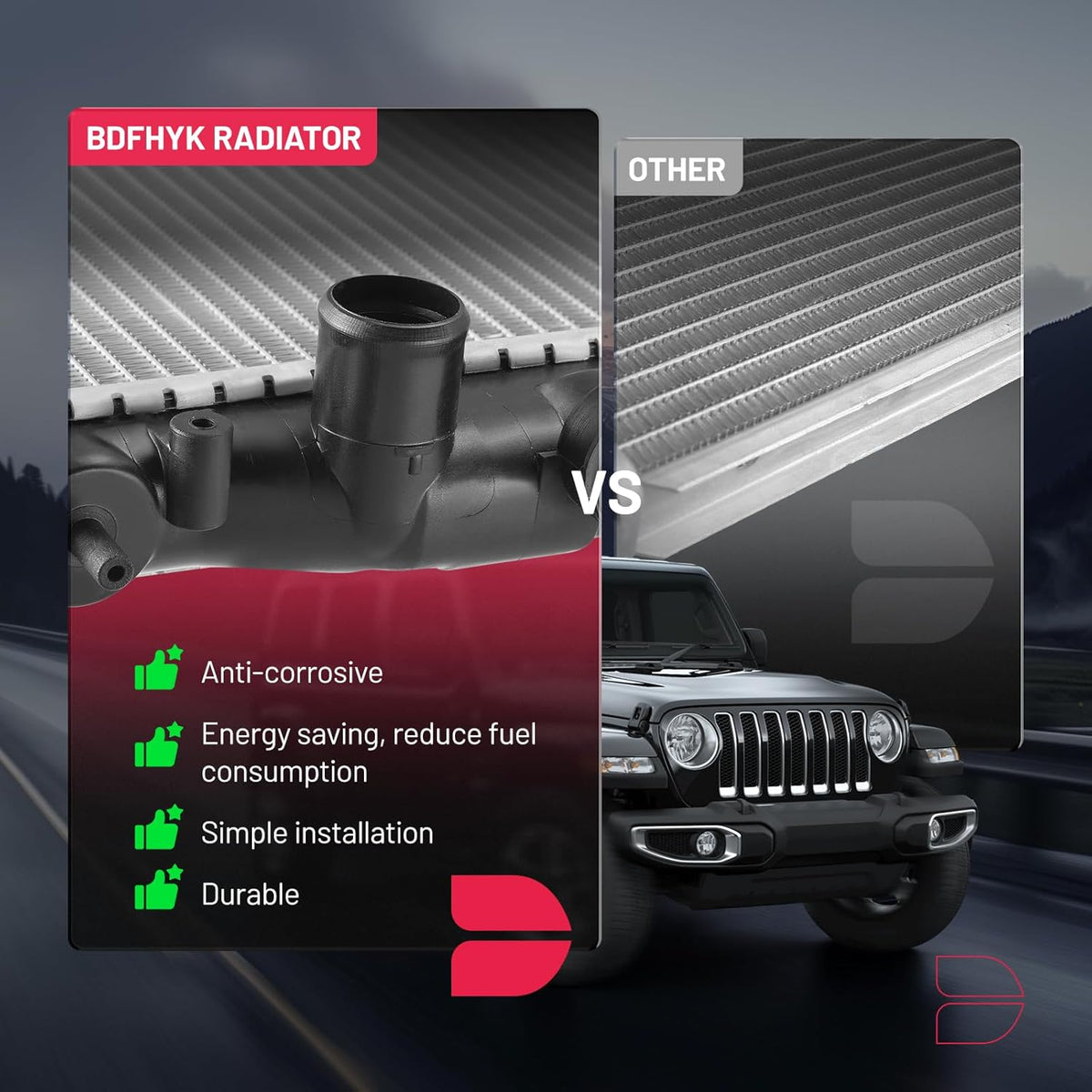 [Superior Cooling Performance] BDFHYK aluminum radiator maintains good engine temperature, even under tough conditions. Featuring an oil cooler, it prevents overheating, improves lubrication, and extends engine life, enhancing vehicle performance