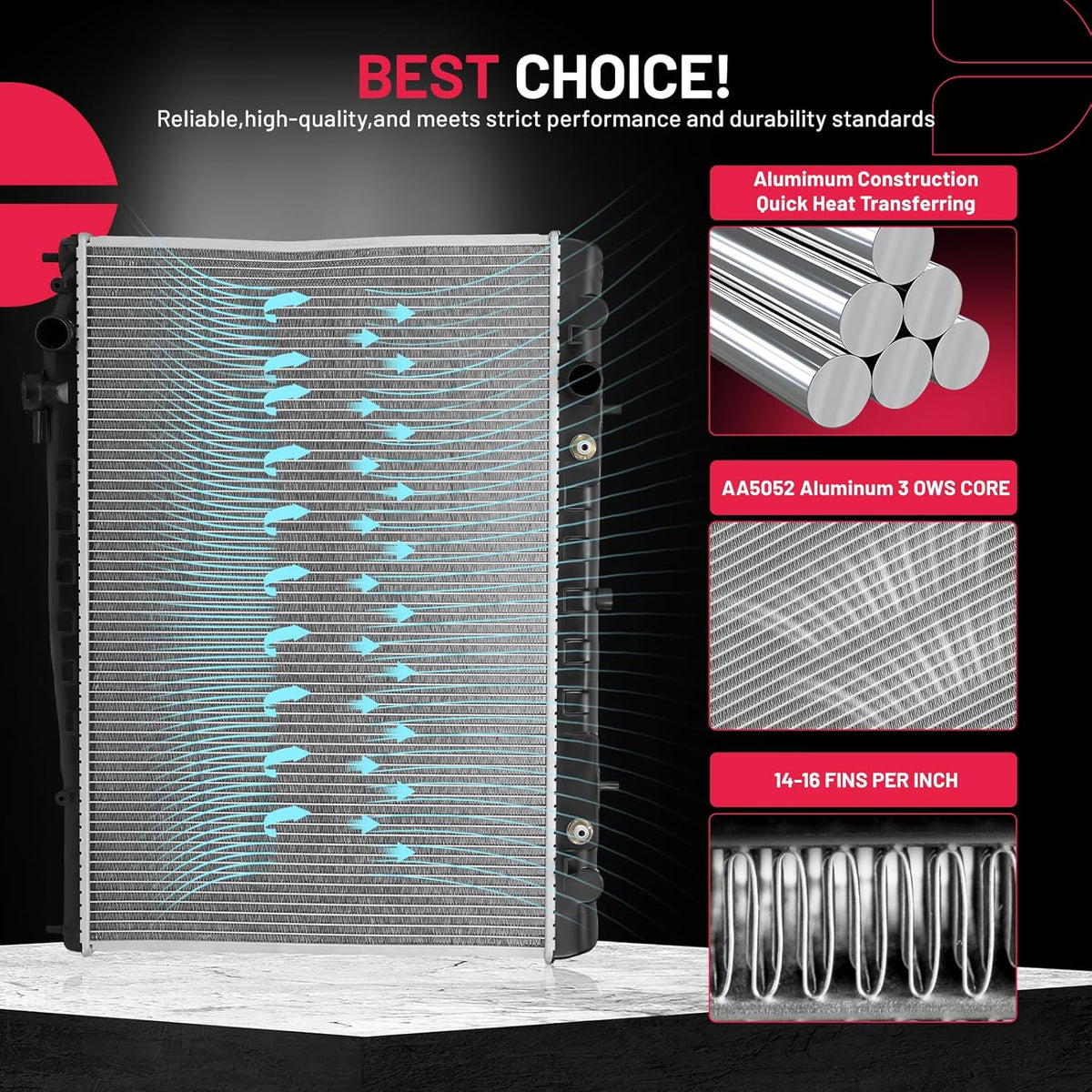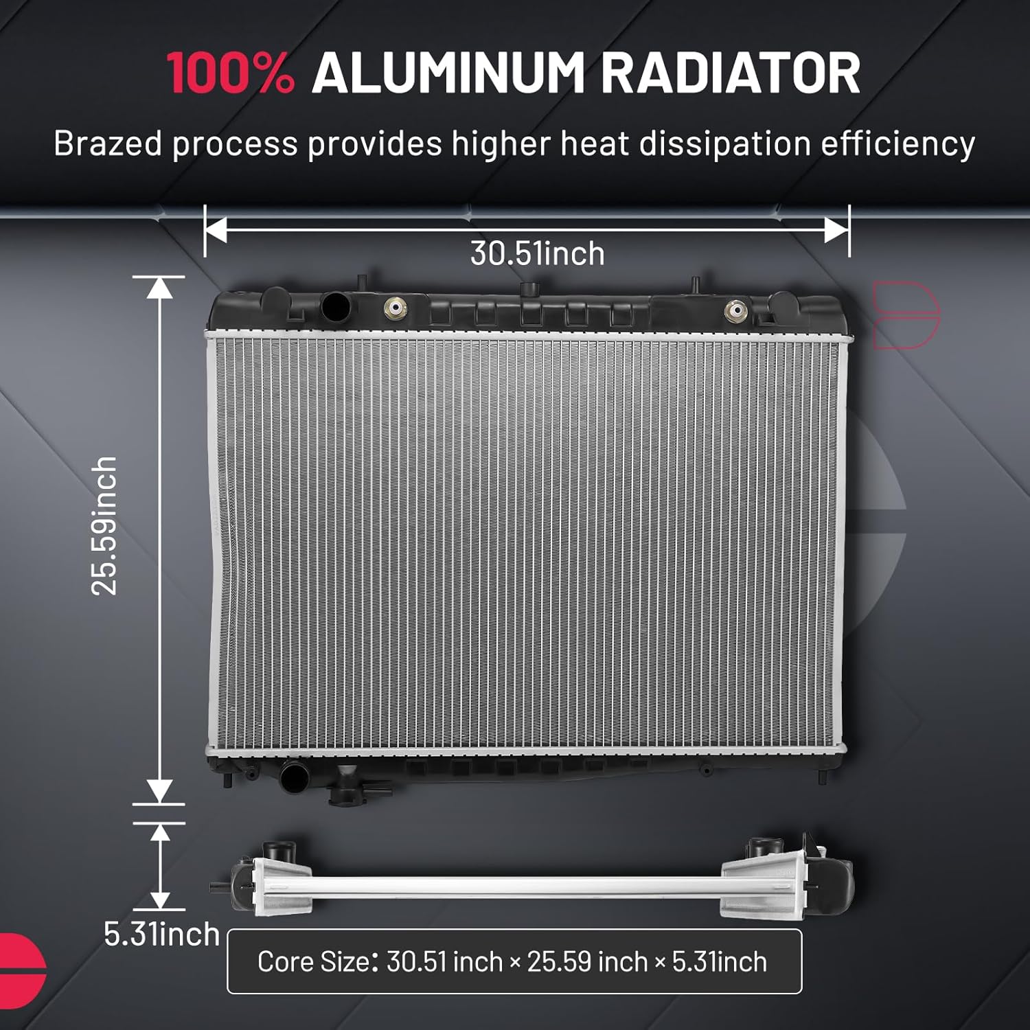 [Strong & Efficient Design] Made from high-quality aluminum, it offers corrosion resistance,and heat conductivity. The page-style fin design facilitates heat dissipation and maintains consistent coolant flow