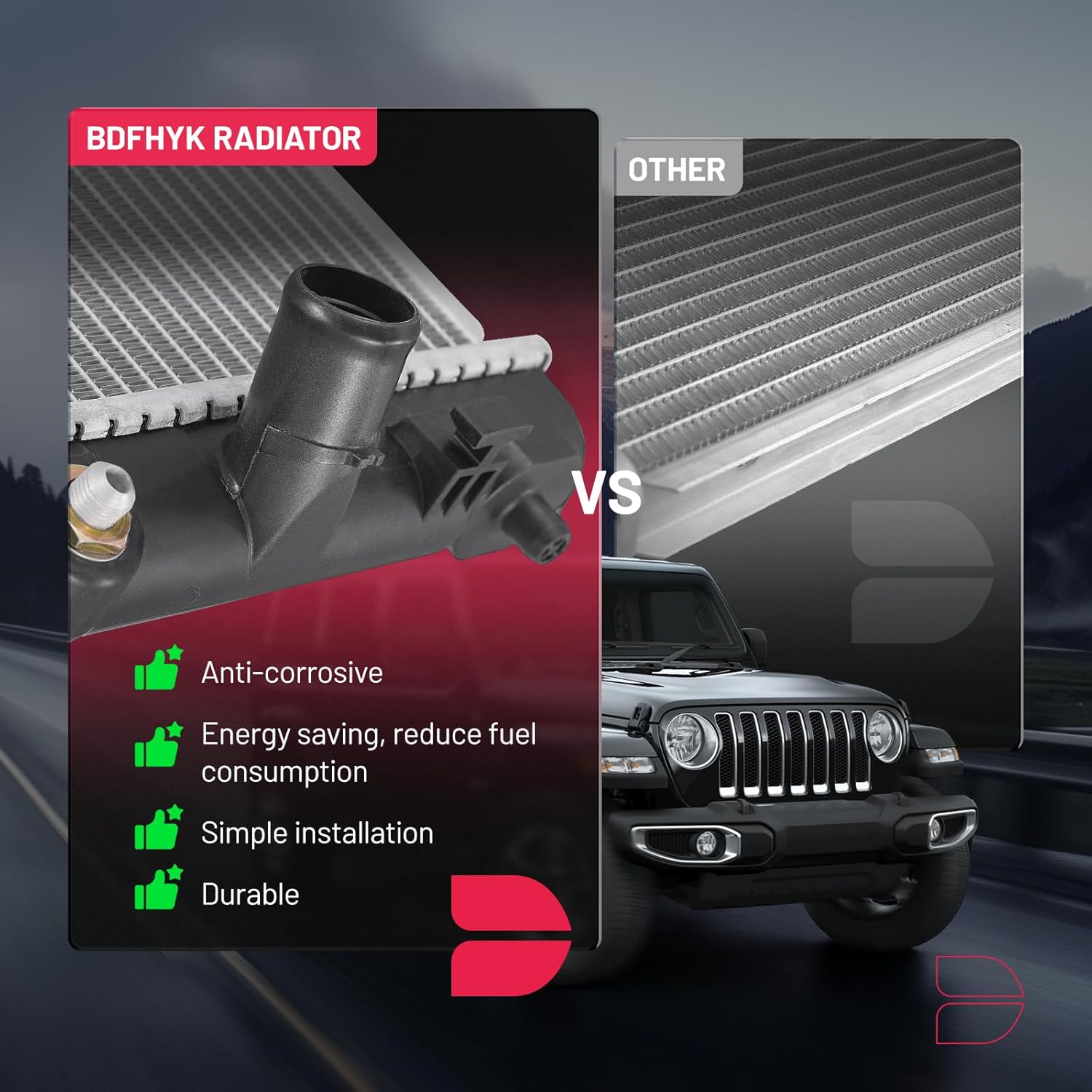[Superior Cooling Performance] BDFHYK aluminum radiator maintains good engine temperature, even under tough conditions. Featuring an oil cooler, it prevents overheating, improves lubrication, and extends engine life, enhancing vehicle performance