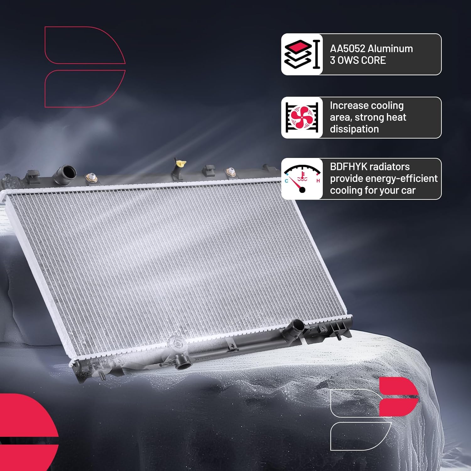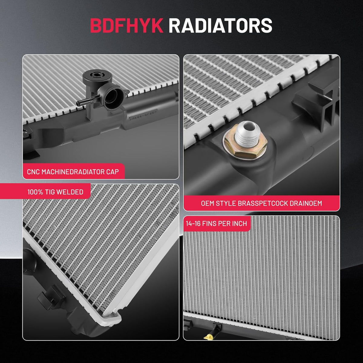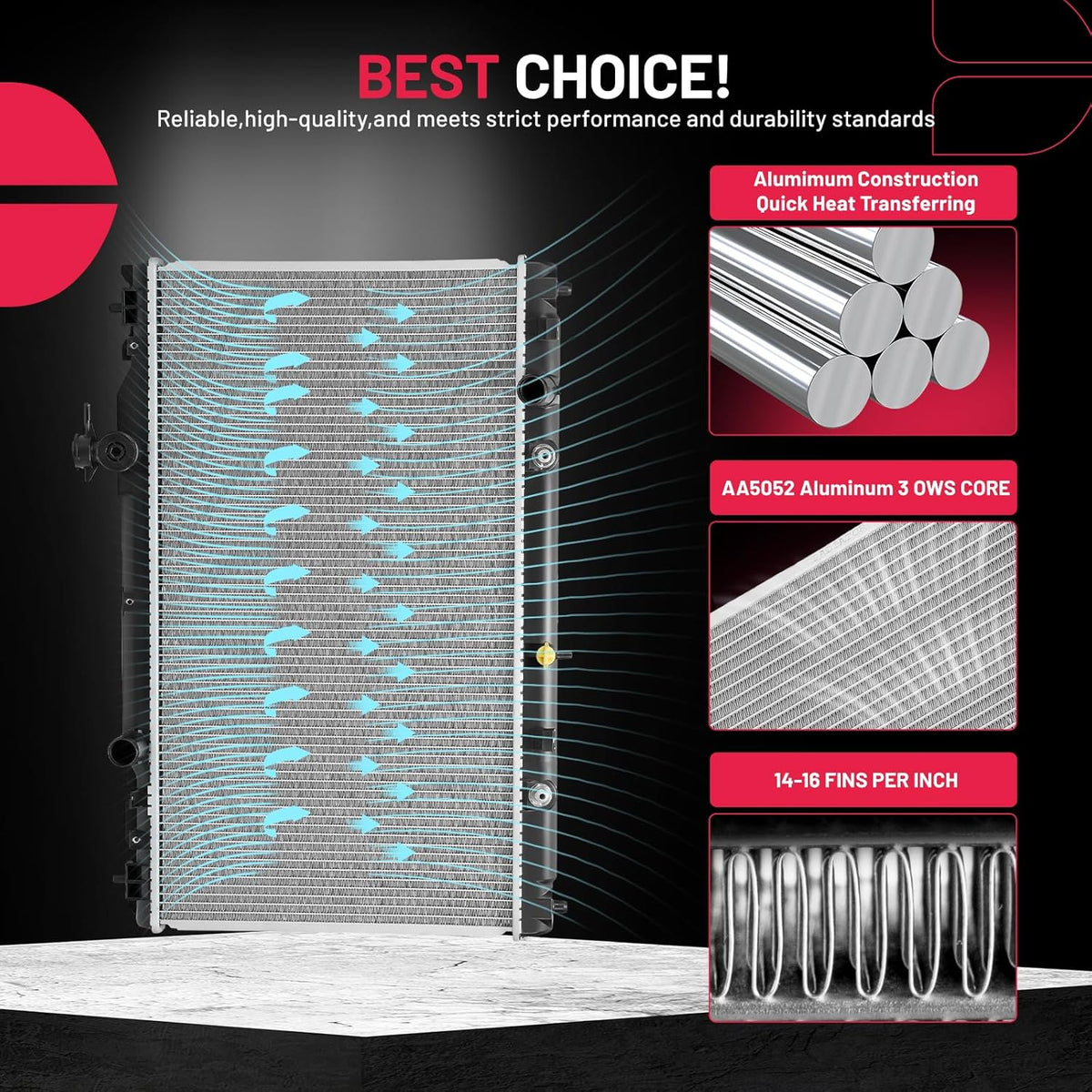[Strong & Efficient Design] Made from high-quality aluminum, it offers corrosion resistance,and heat conductivity. The page-style fin design facilitates heat dissipation and maintains consistent coolant flow