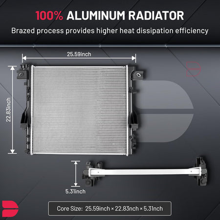 【Radiator】Thickness 26 MM. Aluminum cores can prevent corrosion, extend service life, have better heat dissipation performance, higher thermal conductivity, and lightweight characteristics, and can more effectively transfer heat to the surrounding environment, ensuring durability in extreme hot or cold weather, and maximizing cooling efficiency. All products have undergone leak proof testing
