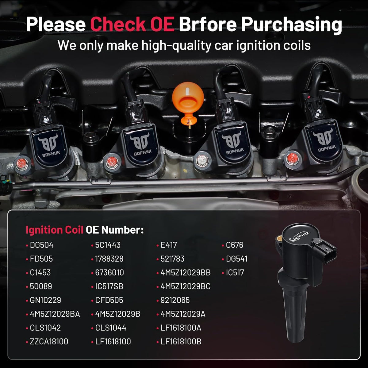 BDFHYK DG504 Ignition Coils Compatible with Mazda Mercury Escape Focus Transit Connect L4 2.0L 2.3L?4 Pack?Replacement for FD505 DG504 DG541 DG507