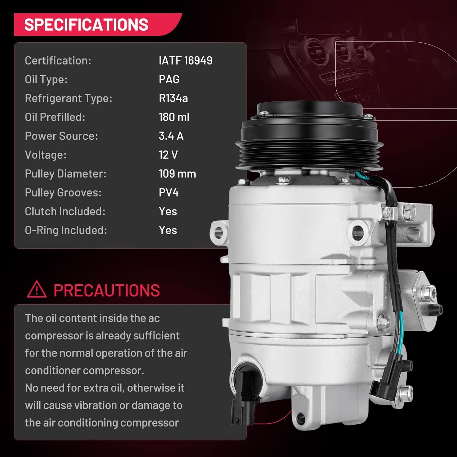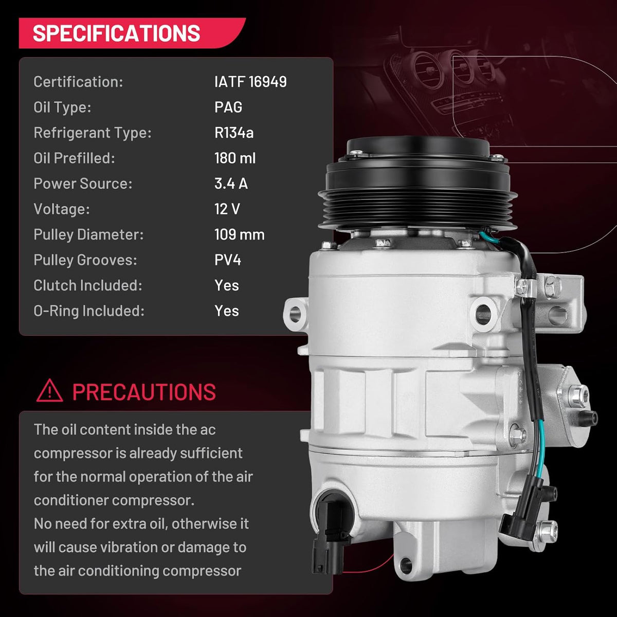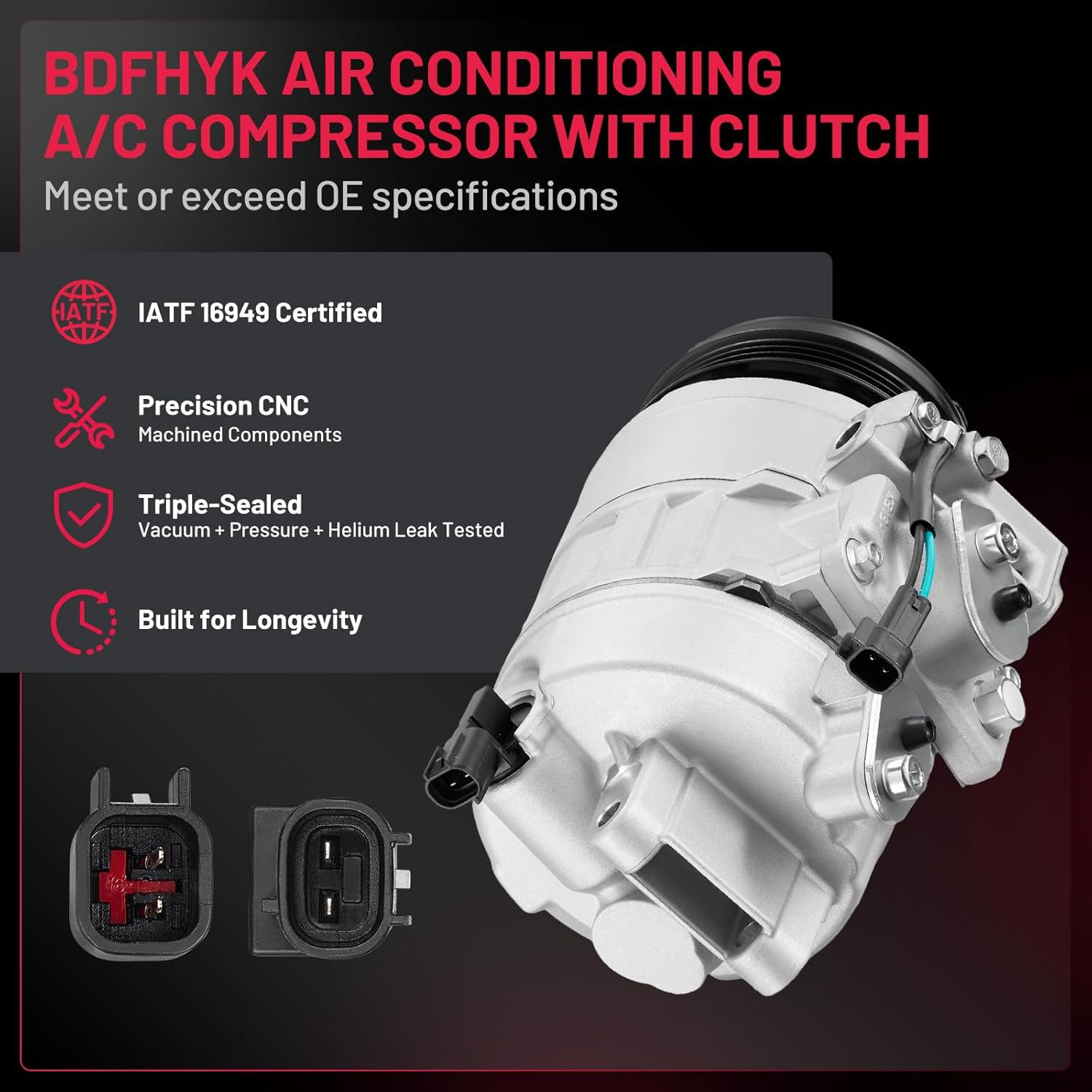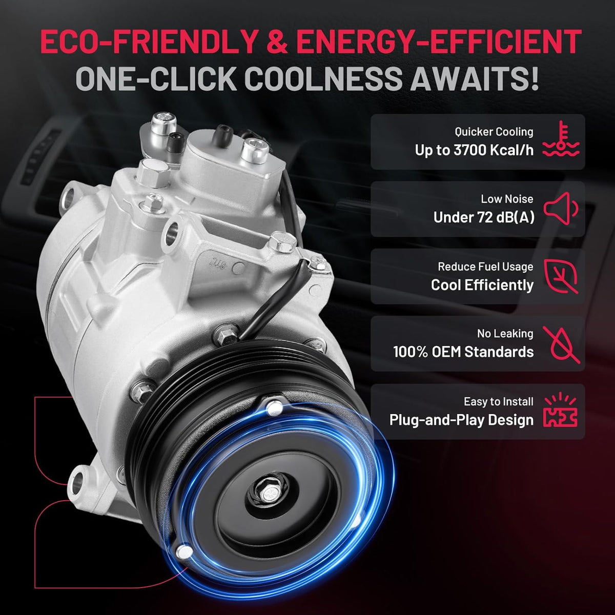 Reliability & Performance - 100% Brand New | IATF 16949 Certified | 50,000-Mile Accelerated Life Tested | Triple-Sealed: Vacuum + Pressure + Helium Leak Tested (99.9% Leak-Free) | Precision CNC-Machined Components | Faster Cooling & Quieter vs. Standard Compressors | Built for Longevity
