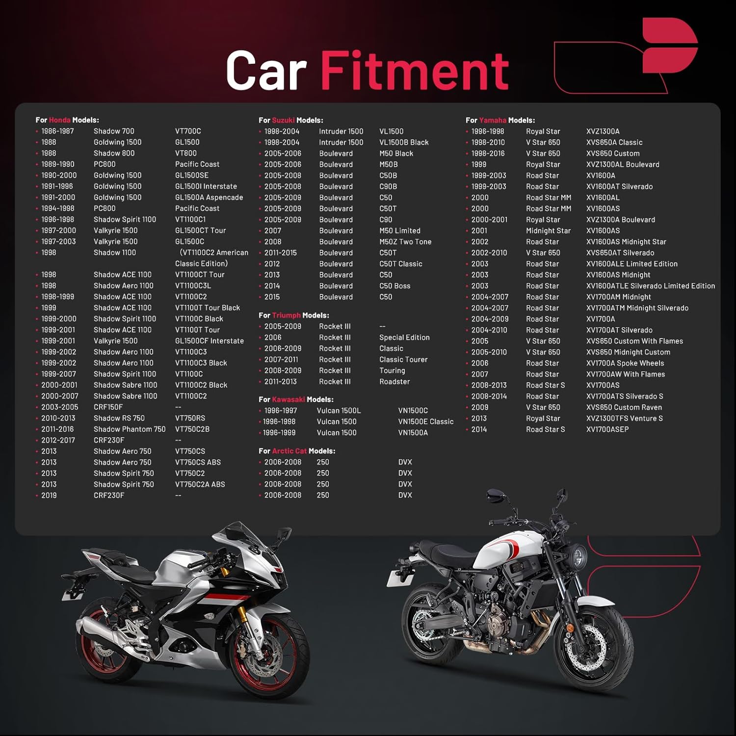 【Compatibility Information】:Universal Spark Plug 5129 Fit for Arctic Cat 250,300; Fit for Honda CRF150F,CRF230F,Goldwing 1500,PC800,Valkyrie 1500; Fit for Honda Shadow 700,800,1100,ACE 1100,Aero 750,Aero 1100,Phantom 750,RS 750,Sabre 1100,Spirit 750,Spirit 1100; Fit for Kawasaki Vulcan 1500,1500L; Fit for Suzuki Boulevard,Intruder 1500; Fit for Triumph Rocket III; Fit for Yamaha Midnight Star,V Star 650,Road Star.Please see images or details page for complete Compatibility information