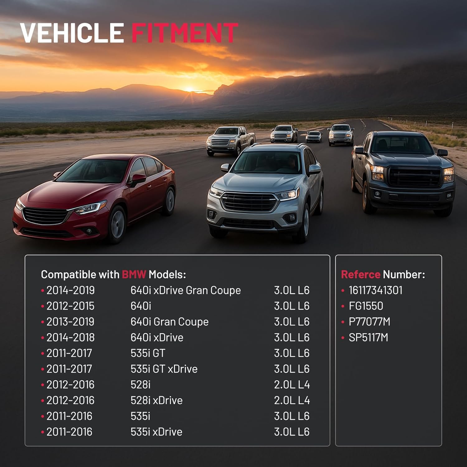 【Compatible with】Compatible with BMW 640i xDrive Gran Coupe 2014-2019 3.0L l6, Compatible with BMW 640i 2012-2015 3.0L l6, Compatible with BMW 640i Gran Coupe 2013-2019 3.0L l6, Compatible with BMW 640i xDrive 2014-2018 3.0L l6, Compatible with BMW 535i GT/535i GT xDrive 2011-2017 3.0L l6, Compatible with BMW 528i/528i xDrive 2012-2016 2.0L l4, Compatible with BMW 535i/535i xDrive 2011-2016 3.0L l6