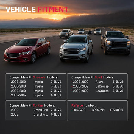 【Compatible with】Compatible with Buick Allure 2008-2009 5.3L V8; LaCrosse 2008-2009 3.8L V6, LaCrosse 2008-2009 5.3L V8; Compatible with Chevrolet Impala 2008-2010 3.5L V6;Impala 2008-2010 3.9L V6; Impala 2008-2009 5.3L V8; Compatible with Pontiac Grand Prix 2008 3.8L V6; Grand Prix 2008 5.3L V8