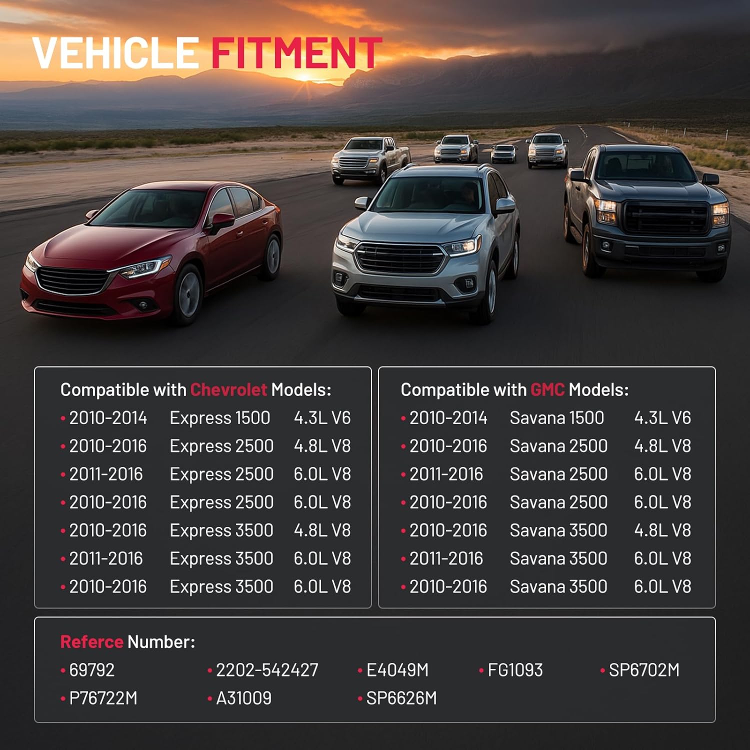 【Compatible with】Compatible with Chevrolet Express 1500 2010-2014 4.3L V6;Express 2500 2010-2016 4.8L V8, 6.0L V8;Express 3500 2010-2016 4.8L V8, 6.0L V8;Compatible with GMC Savana 1500 2010-2014 4.3L V6;Savana 2500 2010-2016 4.8L V8, 6.0L V8;Savana 3500 2010-2016 4.8L V8, 6.0L V8