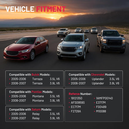 【Compatible with】Compatible with Buick Terraza 2005-2006 3.5L V6, 2006-2007 3.9L V6; Compatible with Chevrolet Uplander 2005-2006 3.5L V6, 2006-2007 3.9L V6; Compatible with Pontiac Montana 2005-2006 3.5L V6, 2006-2007 3.9L V6; Compatible with Saturn Relay 2005-2006 3.5L V6, 2006-2007 3.9L V6
