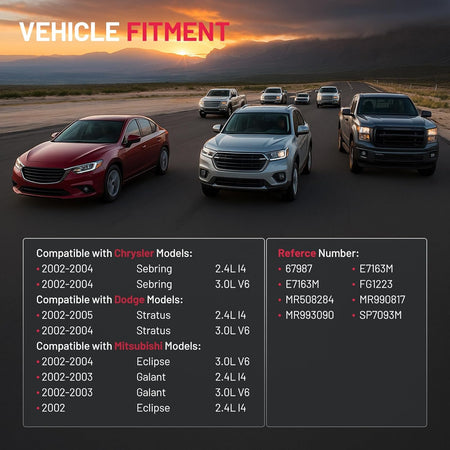【Compatible with】Compatible with Chrysler Sebring 2002-2004 2.4L l4, 3.0L V6,Compatible with Dodge Stratus 2002-2005 2.4L l4, 3.0L V6,Compatible with Mitsubishi Eclipse 2002-2004 3.0L V6, 2.4L l4,Compatible with Mitsubishi Galant 2002-2003 2.4L l4, 3.0L V6