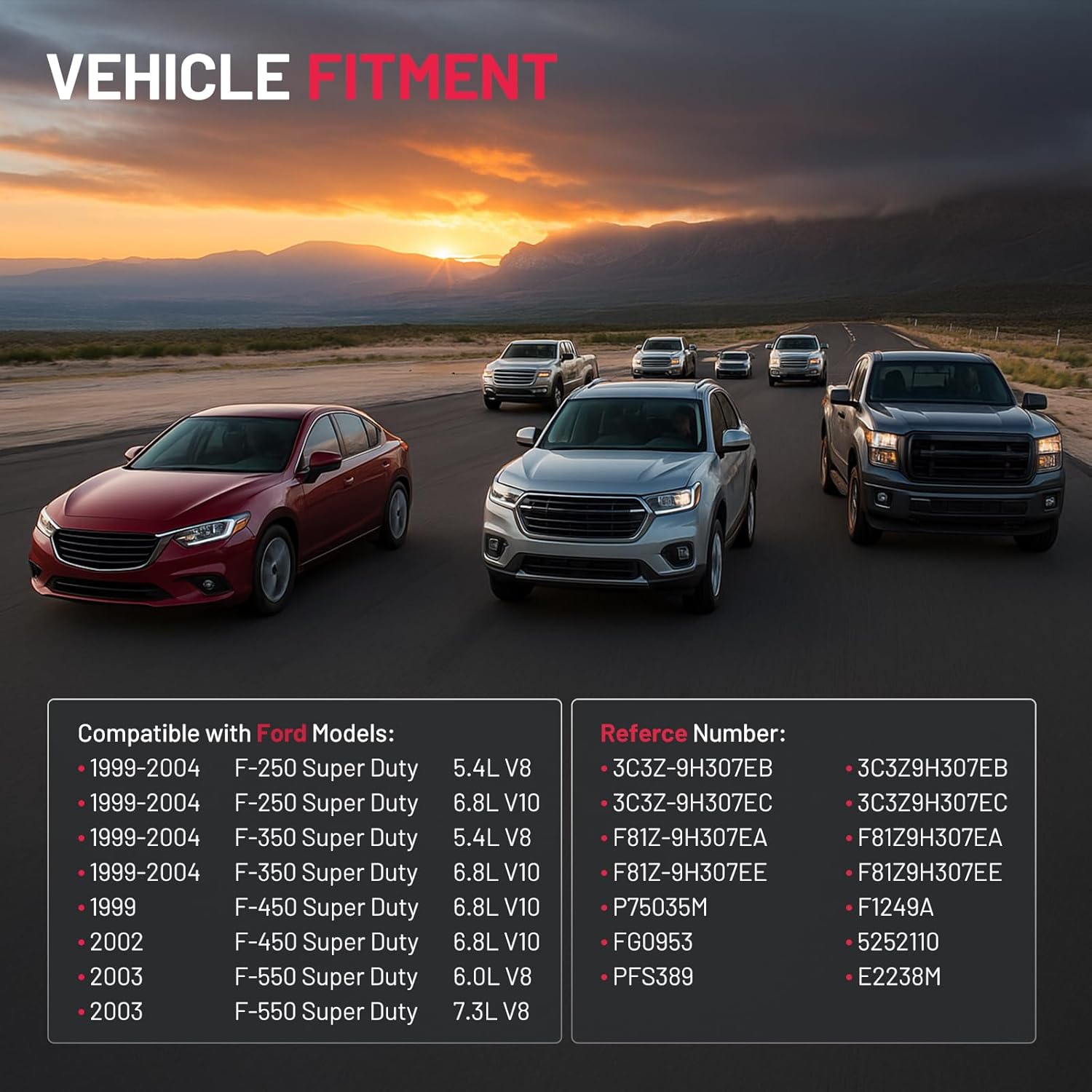 【Compatible with】Compatible with Ford F-250 Super Duty 1999-2004 5.4L V8, 6.8L V10,Compatible with Ford F-350 Super Duty 1999-2004 5.4L V8, 6.8L V10,Compatible with Ford F-450 Super Duty 1999, 2002 6.8L V10,Compatible with Ford F-550 Super Duty 2003 6.0L V8, 7.3L V8