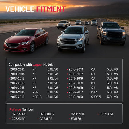 【Compatible with】Compatible with Jaguar XF 2010-2012 5.0L V8, 2010-2015 5.0L V8, 2013-2015 2.0L l4, 2013-2015 3.0L V6, 2014-2015 3.0L V6, Compatible with Jaguar XFR 2010-2015 5.0L V8, Compatible with Jaguar XFR-S 2013-2015 5.0L V8, Compatible with Jaguar XJ 2010-2013 5.0L V8, 2010-2017 5.0L V8, 2013-2019 3.0L V6, 2014-2019 3.0L V6, 2018-2019 5.0L V8, Compatible with Jaguar XJR 2014-2017 5.0L V8, Compatible with Jaguar XJR575 2018-2019 5.0L V8