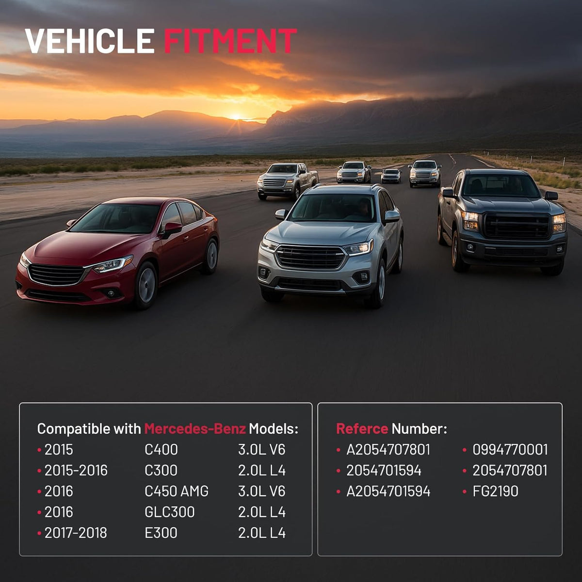 【Compatible with】Compatible with Mercedes-Benz C400 2015 3.0L V6, Compatible with Mercedes-Benz C300 2015-2016 2.0L l4, Compatible with Mercedes-Benz C450 AMG 2016 3.0L V6, Compatible with Mercedes-Benz GLC300 2016 2.0L l4, Compatible with Mercedes-Benz E300 2017-2018 2.0L l4