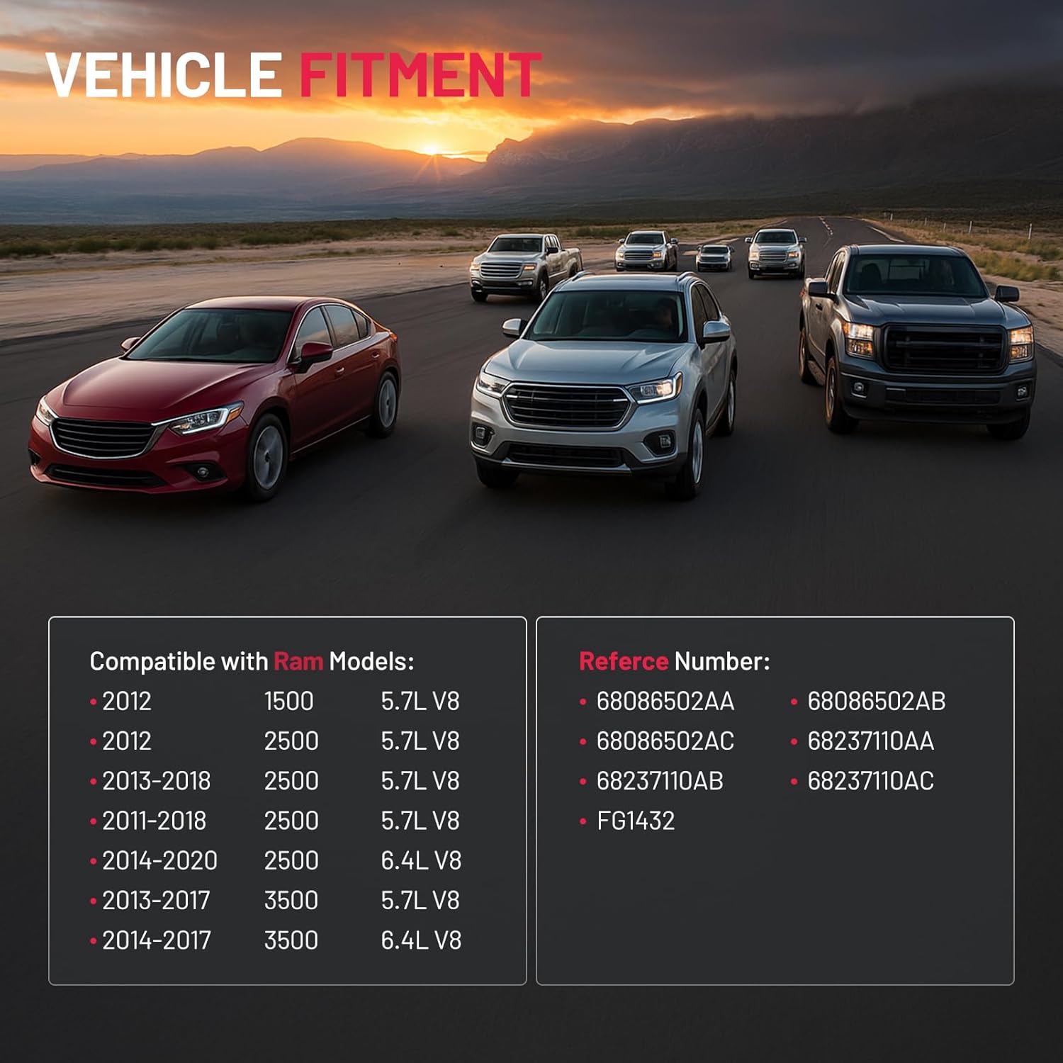 【Compatible with】Compatible with Ram 1500 2012 5.7L V8, Compatible with Ram 2500 2011-2018 5.7L V8, Compatible with Ram 2500 2013-2018 5.7L V8, Compatible with Ram 2500 2014-2020 6.4L V8, Compatible with Ram 3500 2013-2017 5.7L V8, Compatible with Ram 3500 2014-2017 6.4L V8