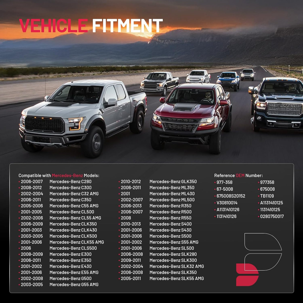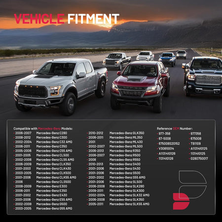 【Compatibility】Compatible with 2006-2007 Mercedes-Benz C280, 2008-2012 Mercedes-Benz C300, 2002-2004 Mercedes-Benz C32 AMG, 2006-2011 Mercedes-Benz C350, 2005-2006 Mercedes-Benz C55 AMG, 2001-2005 Mercedes-Benz CL500, 2002-2006 Mercedes-Benz CL55 AMG, 2006-2009 Mercedes-Benz CLK350, 2001-2003 Mercedes-Benz CLK430, 2003-2005 Mercedes-Benz CLK500, 2001-2006 Mercedes-Benz CLK55 AMG, 2006 Mercedes-Benz CLS500, 2008-2009 Mercedes-Benz E300, 2006-2011 Mercedes-Benz E350, 2001-2002 Mercedes-Benz E430.