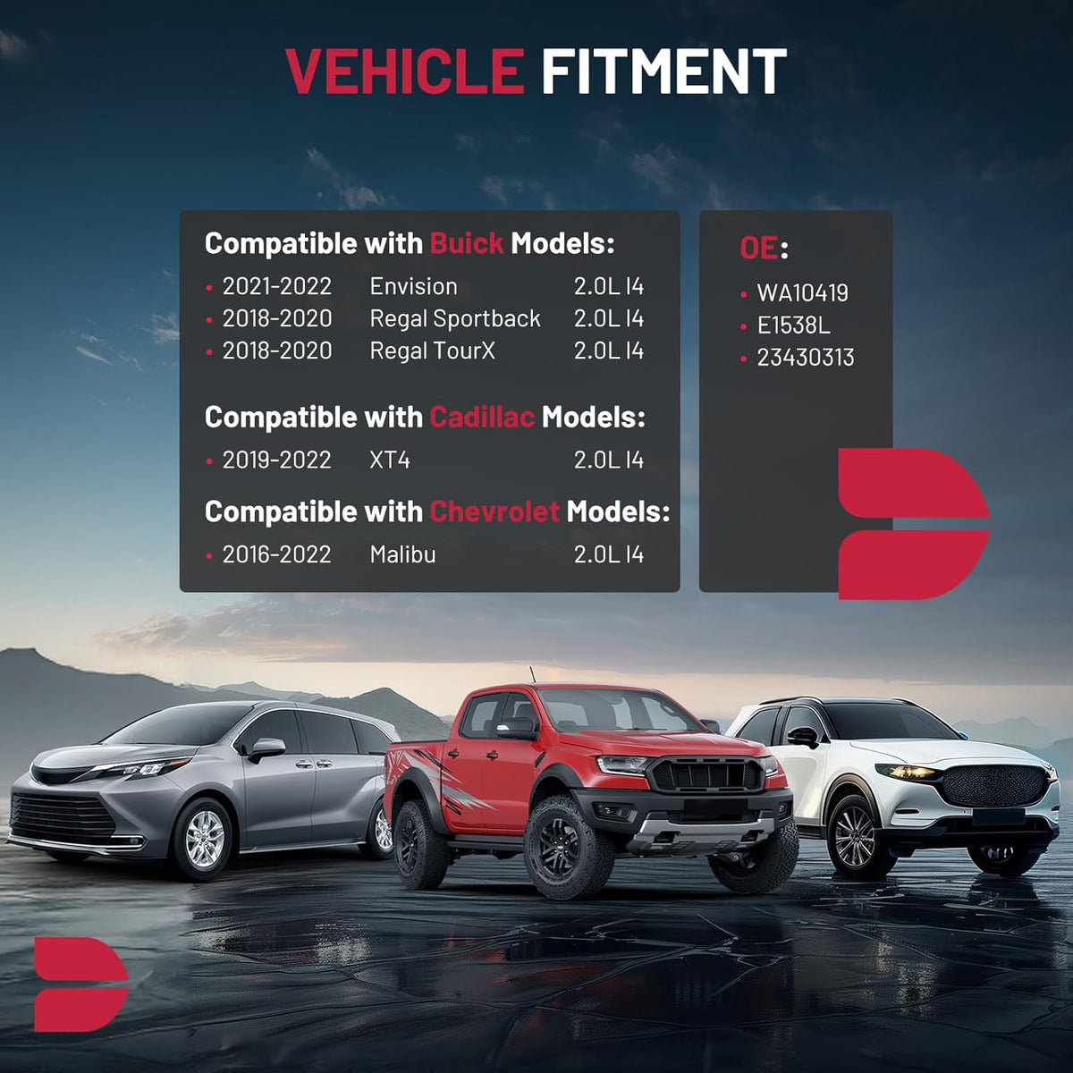 【COMPATIBILITY】Compatible with Buick Models: 2021-2022 Envision 2.0L l4, 2018-2020 Regal Sportback 2.0L l4, 2018-2020 Regal TourX 2.0L l4; Compatible with Cadillac Models: 2019-2022 XT4 2.0L l4; Compatible with Chevy Models: 2016-2022 Malibu 2.0L l4