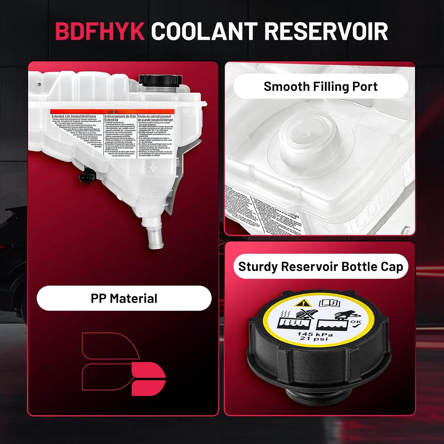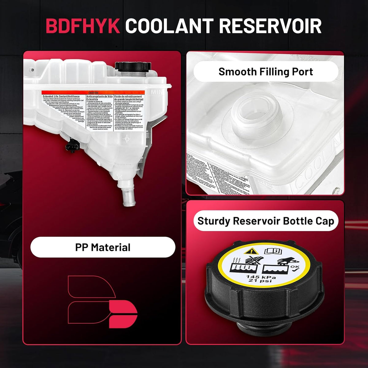 【Coolant Reservoir Features】This coolant overflow tank is made of high quality PP material, which helps to reduce oil dilution, fuel consumption, prevent oil leakage and reduce the pressure of car cooling system. You can directly see the internal antifreeze level without opening the radiator cap to avoid damaging parts.