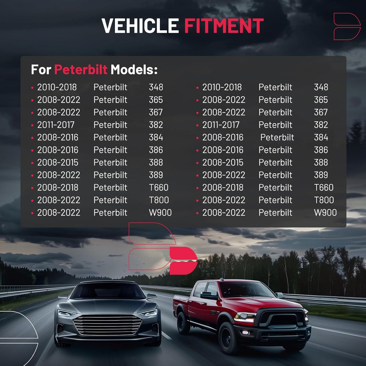 【Precautions】Please confirm compatibility based on your vehicle's year, brand, model, and the OE number of the replacement parts.Compatible with:2008-2022 Peterbilt 348 365 367 382 384 386 388 389,2008-2022 Peterbilt T660 T800 W900.etc.More information can be found in the pictures or on the details page.