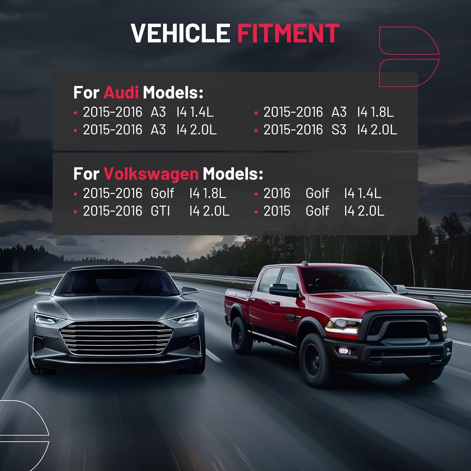 【Precautions】Please confirm compatibility based on your vehicle's year, brand, model, and the OE number of the replacement parts. Compatible with Audi 2015-2016 A3 l4 1.4L, 2015-2016 S3 l4 2.0L; Compatible with VW 2015-2016 Golf l4 1.8L, 2015-2016 GTI l4 2.0L.etc. More information can be found in the pictures or on the details page.