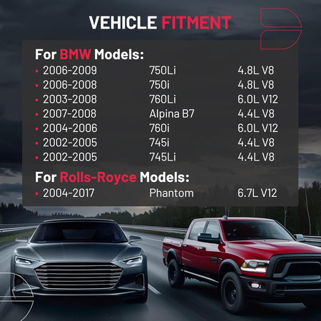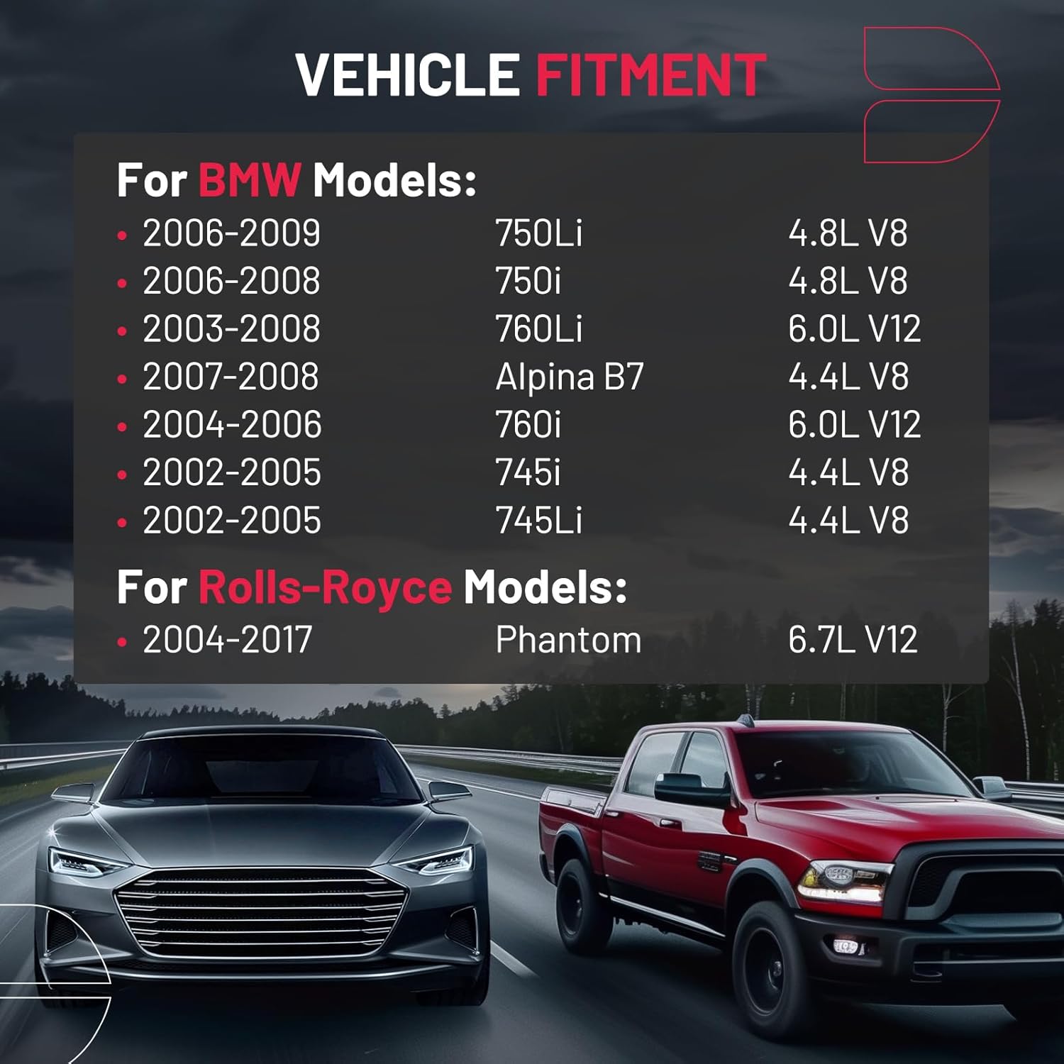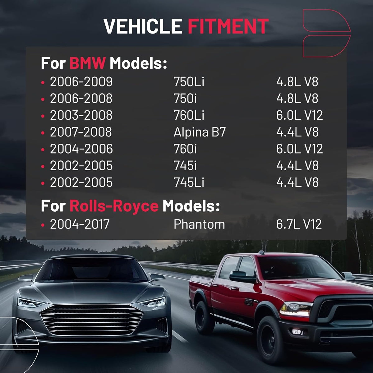 【Precautions】Please confirm compatibility based on your vehicle's year, brand, model, and the OE number of the replacement parts. Compatible with Rolls-Royce 2004-2017 Phantom 6.7L V12; Compatible with BMW 2006-2009 750Li 4.8L V8, 2006-2008 750i 4.8L V8, 2003-2008 760Li 6.0L V12, 2007-2008 Alpina B7 4.4L V8, 2004-2006 760i 6.0L V12, 2002-2005 745i 4.4L V8, 2002-2005 745Li 4.4L V8. More information can be found in the pictures or on the details page.