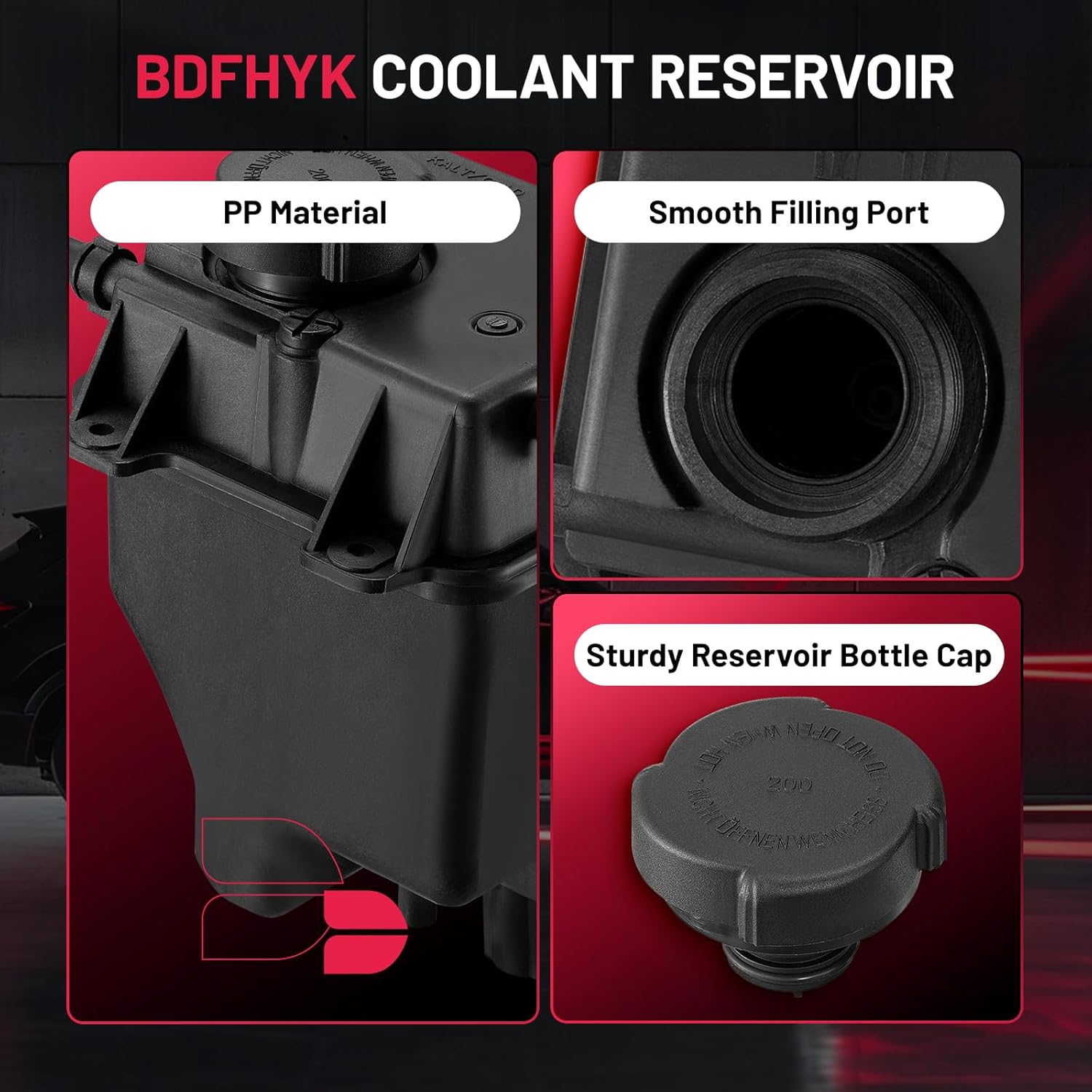 【Coolant Reservoir Features】This coolant overflow tank is made of high quality PP material, which helps to reduce oil dilution, fuel consumption, prevent oil leakage and reduce the pressure of car cooling system. You can directly see the internal antifreeze level without opening the radiator cap to avoid damaging parts.