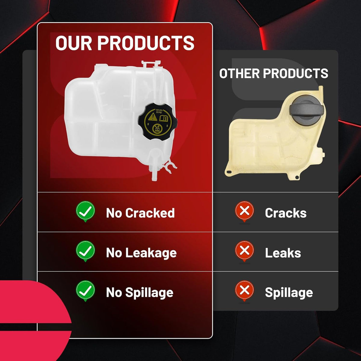 【Buy with Confidence】As an automotive enthusiast and performance lover, our engine coolant reservoir is the perfect choice for you. This is a component for which we provide detailed instructions in the package to help you install it easily, but you must keep in mind that professional installation is essential. Don't hesitate to add it to your cart now!