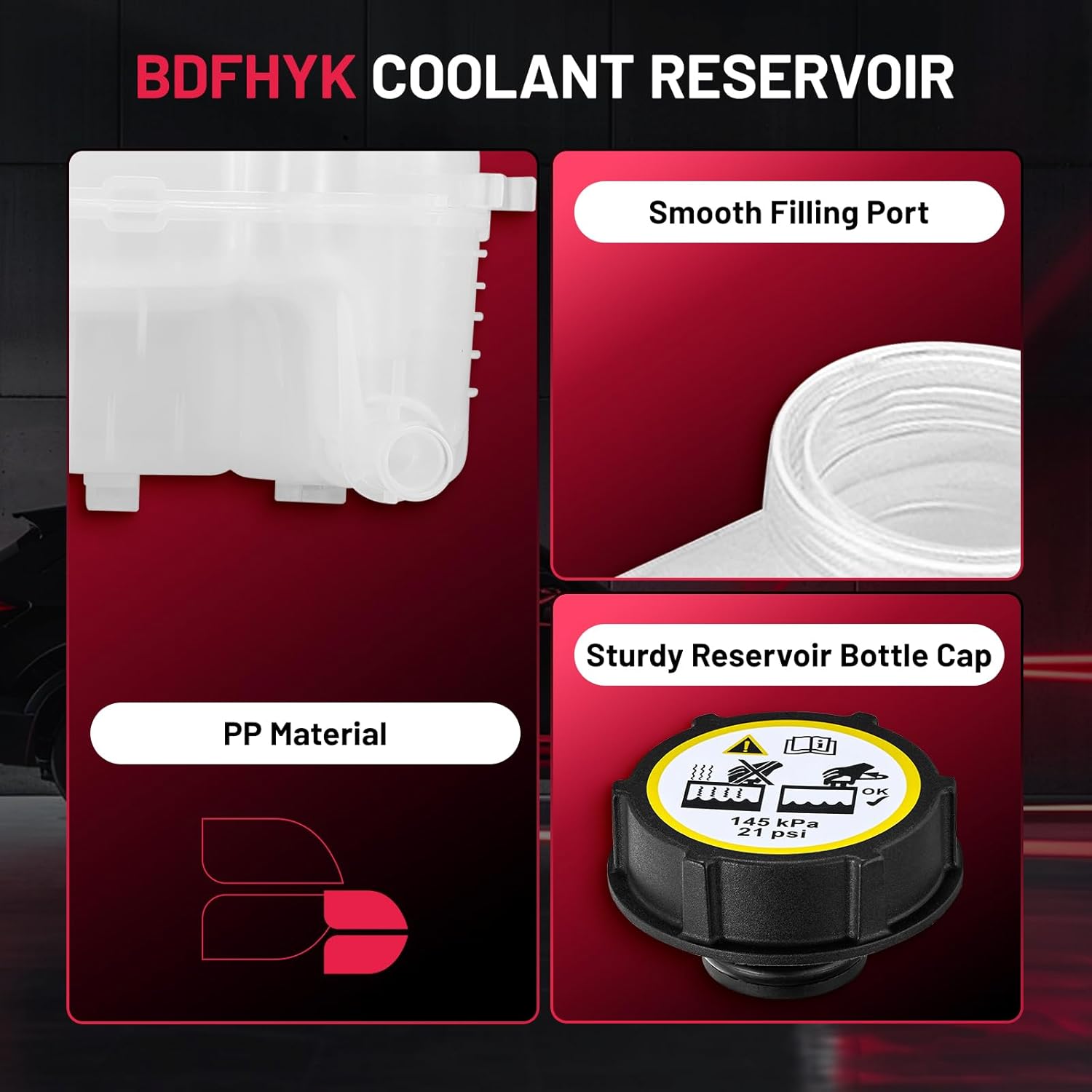 【Coolant Reservoir Features】This coolant overflow tank is made of high quality PP material, which helps to reduce oil dilution, fuel consumption, prevent oil leakage and reduce the pressure of car cooling system. You can directly see the internal antifreeze level without opening the radiator cap to avoid damaging parts.