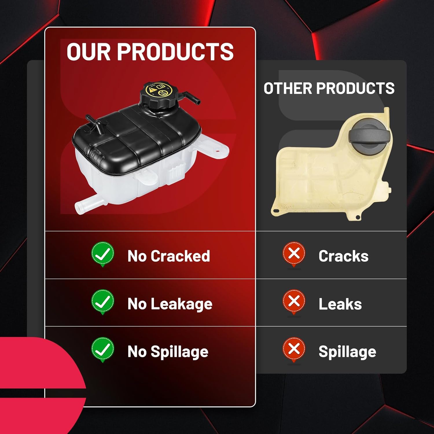 [Buy with Confidence] As an automotive enthusiast and performance lover, our engine coolant reservoir is the perfect choice for you. This is a component for which we provide detailed instructions in the package to help you install it easily, but you must keep in mind that professional installation is essential. Don't hesitate to add it to your cart now!