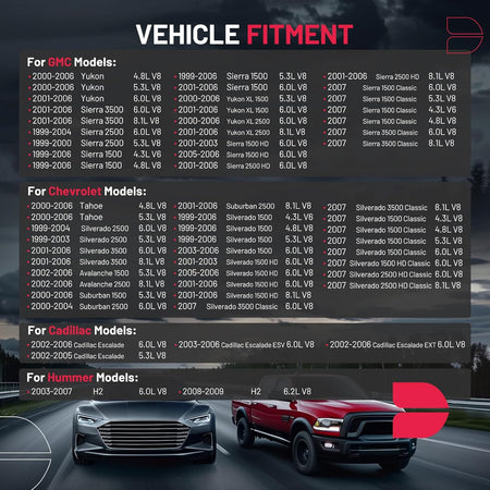 【Precautions】Please confirm compatibility based on your vehicle's year, brand, model, and the OE number of the replacement parts.Compatible with:2002-2006 Chevrolet Avalanche Tahoe Silverado Suburban 1500 2500 3500 HD Classic,2003-2006 Cadillac Escalade ESV EXT,2003-2009 Hummer H2,1999-2007 GMC Yukon XL Sierra 1500 2500 3500 HD Classic.etc.More information can be found in the pictures or on the details page.