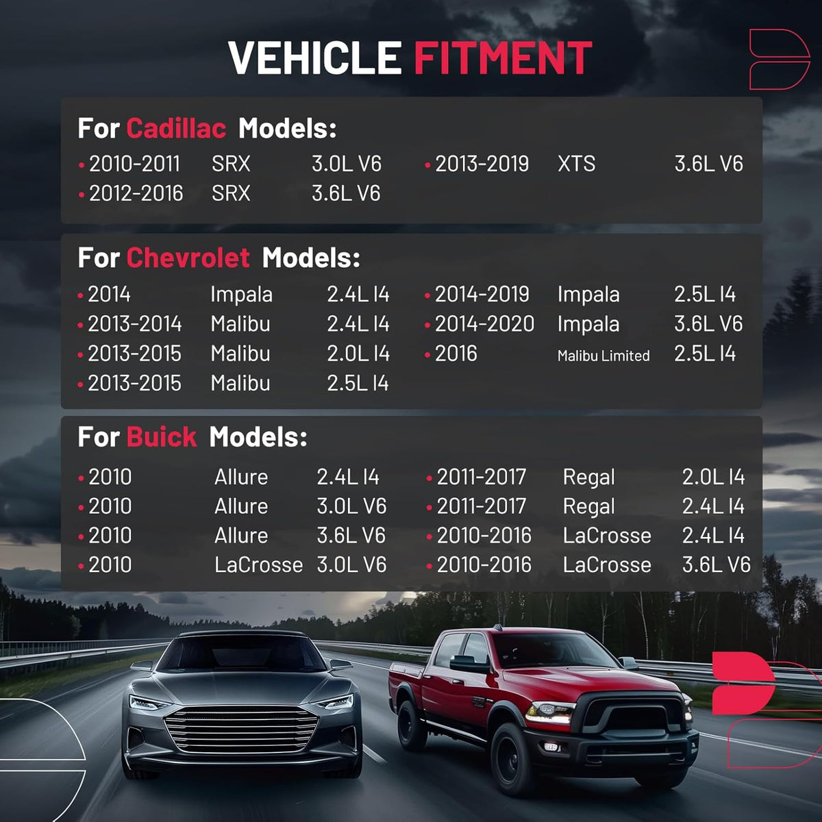 【Precautions】Please confirm compatibility based on your vehicle's year, brand, model, and the OE number of the replacement parts.Compatible with:2014-2020 Chevrolet Impala Malibu Limited,2013-2019 Cadillac XTS SRX,2011-2017 Buick Regal LaCrosse Allure.etc.More information can be found in the pictures or on the details page.