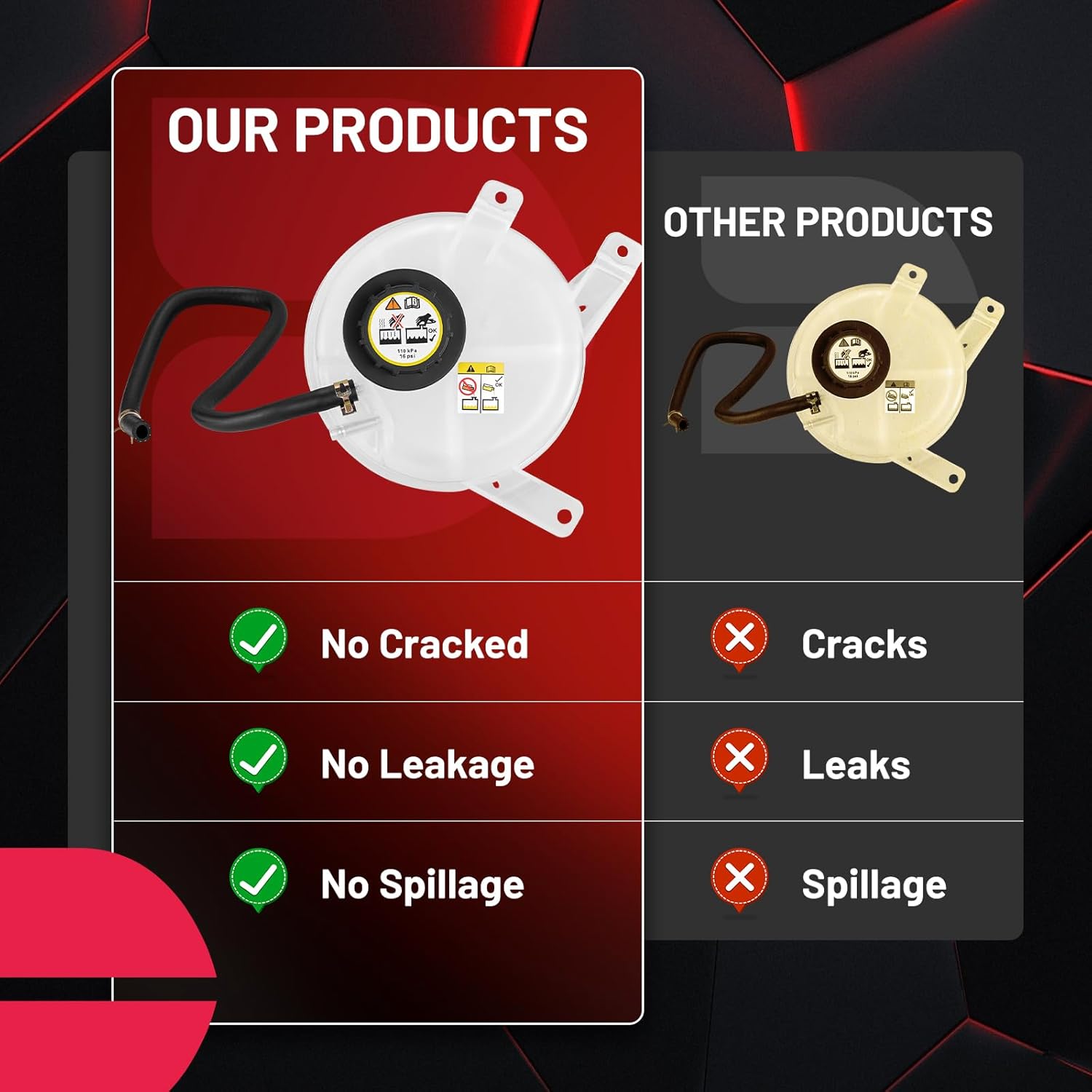 【Buy with Confidence】As an automotive enthusiast and performance lover, our engine coolant reservoir is the perfect choice for you. This is a component for which we provide detailed instructions in the package to help you install it easily, but you must keep in mind that professional installation is essential. Don't hesitate to add it to your cart now!