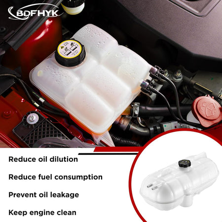 【Coolant Reservoir Features】This coolant overflow tank is made of high quality PP material, which helps to reduce oil dilution, fuel consumption, prevent oil leakage and reduce the pressure of car cooling system. You can directly see the internal antifreeze level without opening the radiator cap to avoid damaging parts.