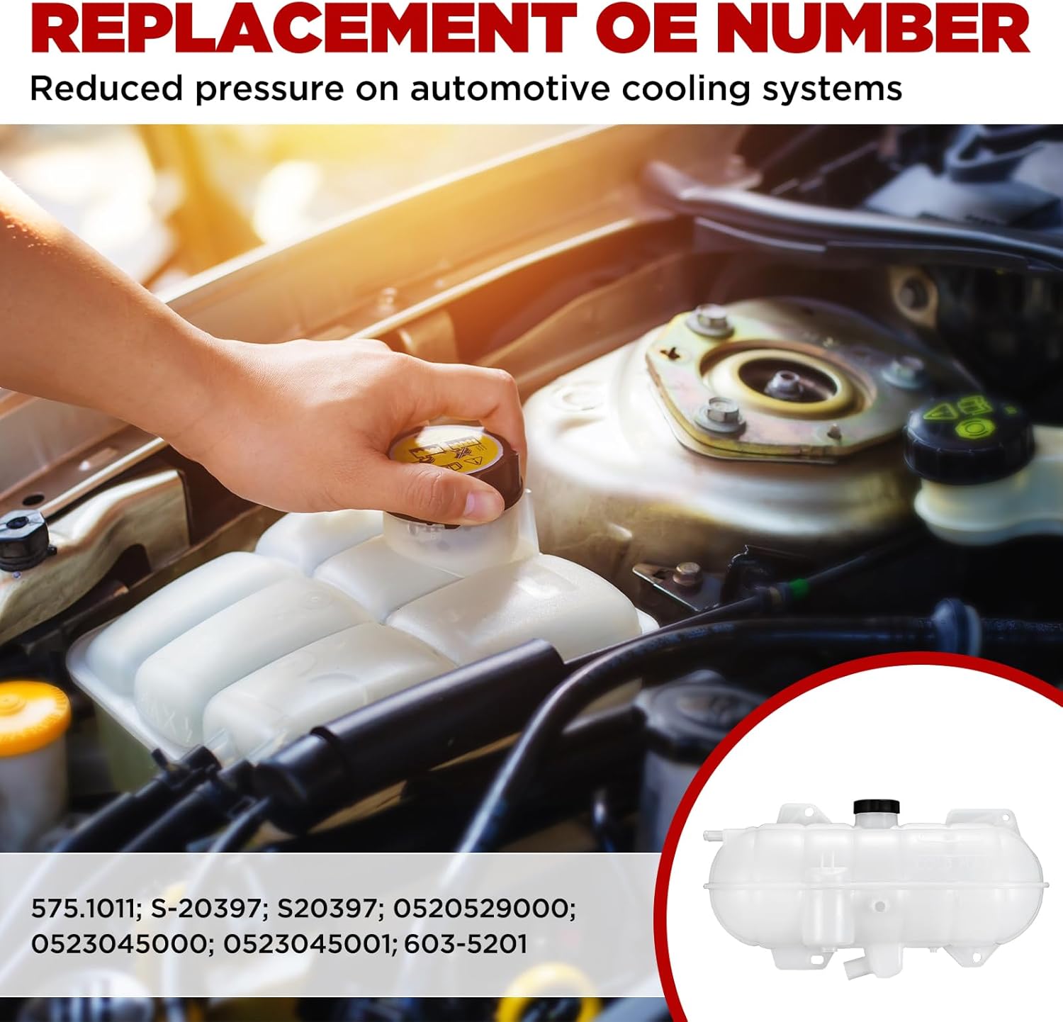 【OE Standard Performance】100% brand new and high quality auto parts with OE grade durability for the ultimate comfortable driving experience. Coolant expansion reservoir OE No.603-5201, S-20397, S20397, 0520529000, 0523045000, 0523045001.