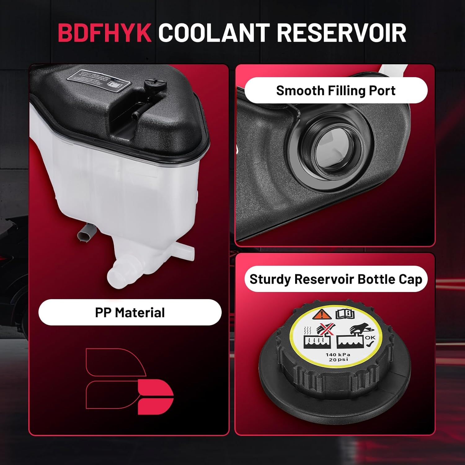 【Coolant Reservoir Features】This coolant overflow tank is made of high quality PP material, which helps to reduce oil dilution, fuel consumption, prevent oil leakage and reduce the pressure of car cooling system. You can directly see the internal antifreeze level without opening the radiator cap to avoid damaging parts.